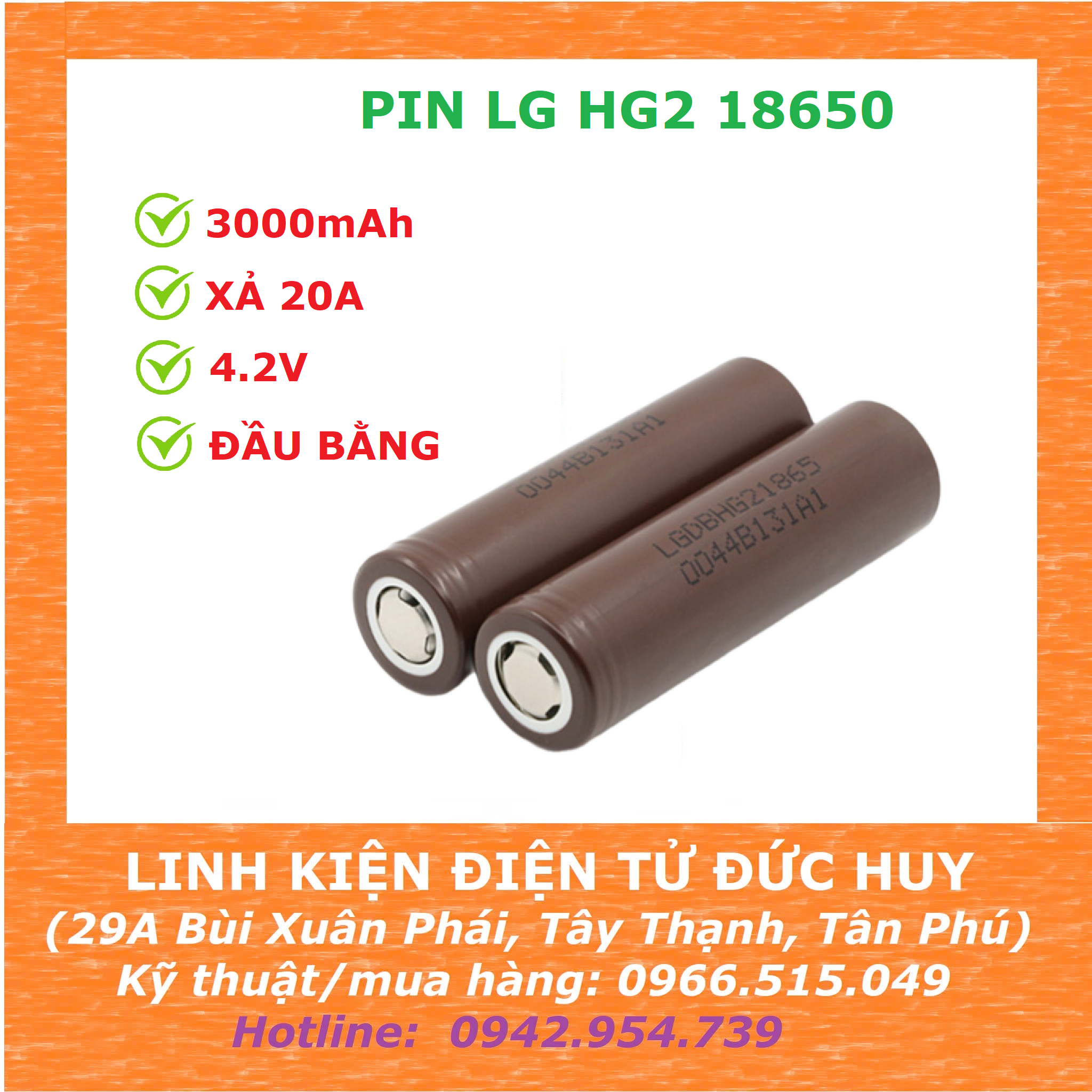 Pin lithium 18650HG2 chính hãng LG chính hãng 3000mah xả liên tục 20A