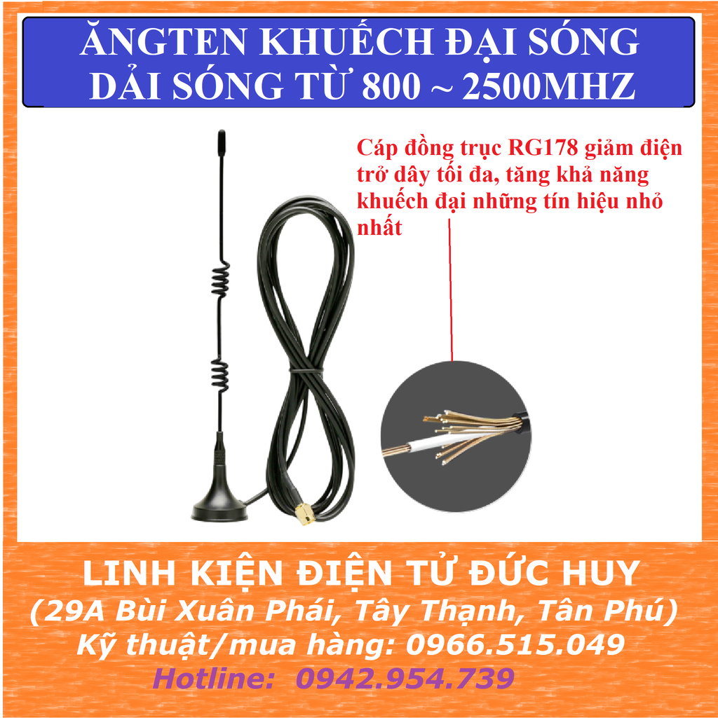 + Khuếch đại tín hiệu 3G, 4G module không dây có tần số nằm trong khoảng 800Mhz đến 2500mhz.