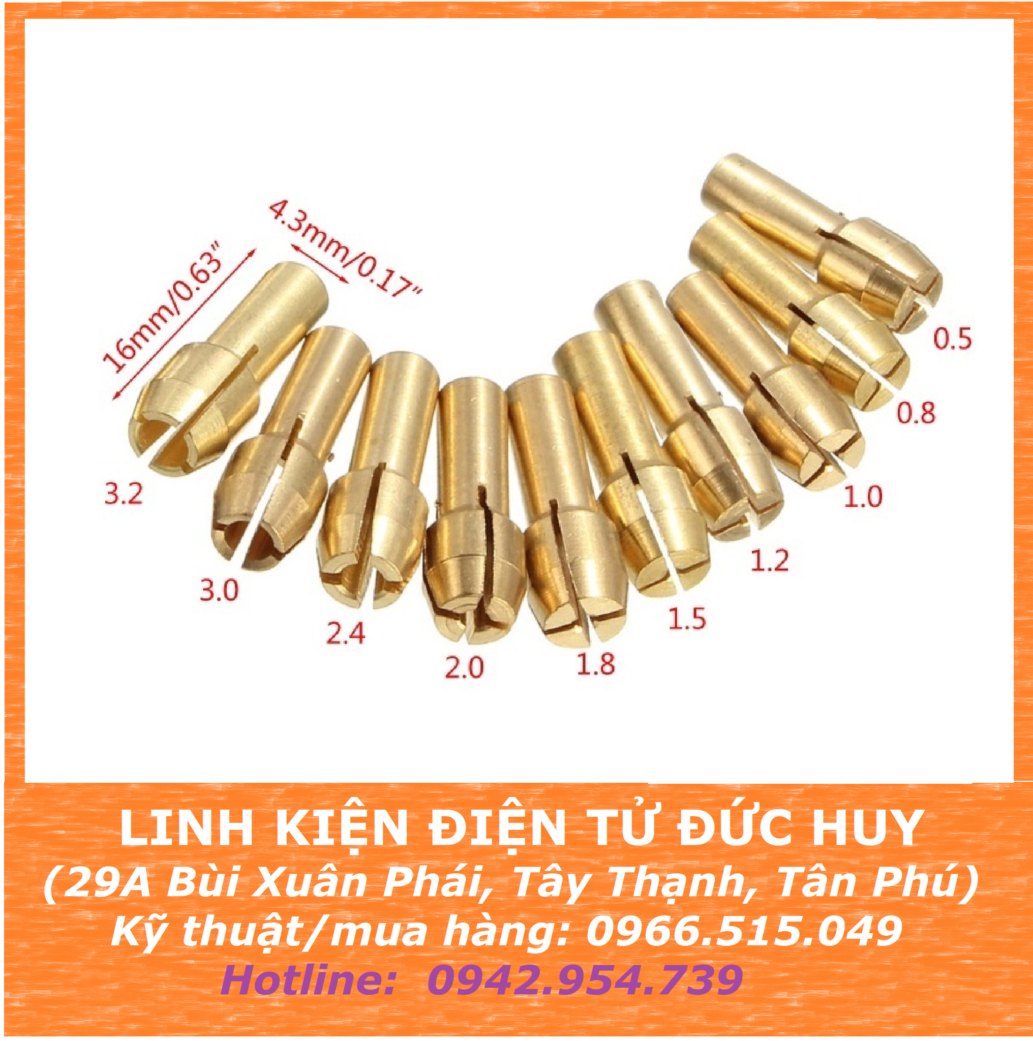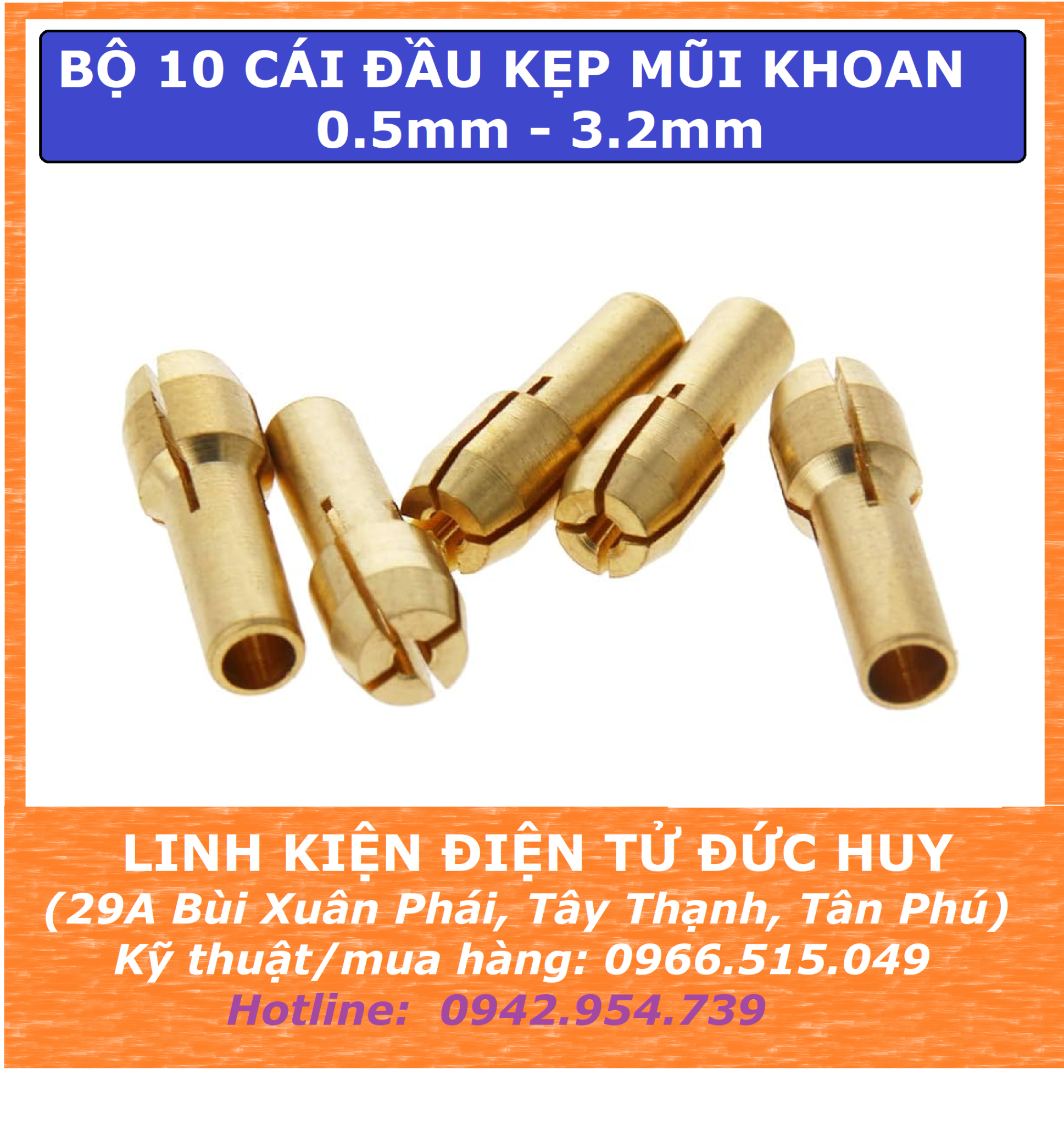 BỘ 10 CÁI ĐẦU KẸP MŨI KHOAN 0.5 - 3.2mm, ĐƯỜNG KÍNH 4.3mm