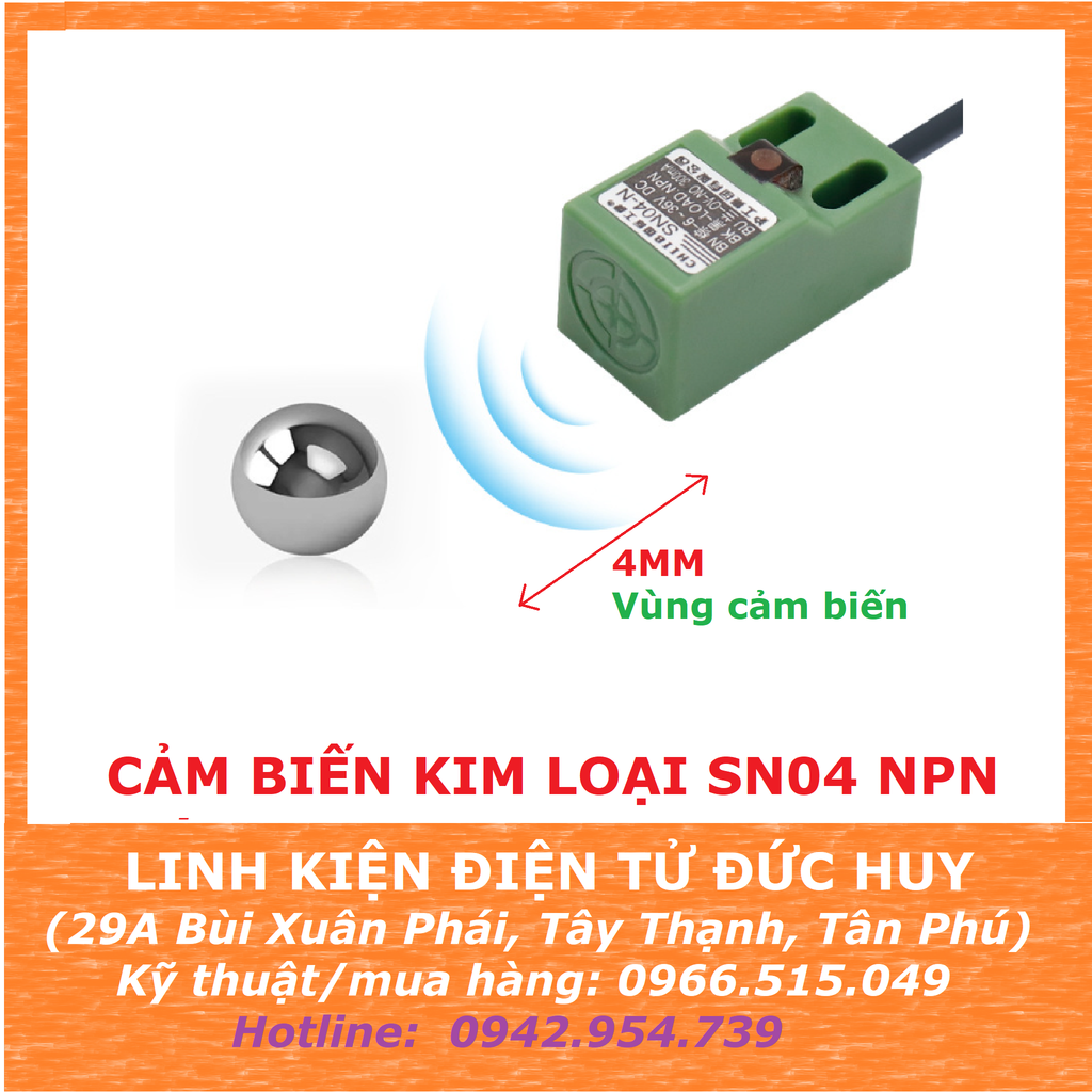 - Cảm biến tiệm cận SN04-P có chức năng phát hiện sự hiện diện của một vật thể kim loại trong vòng 5mm tính từ bề mặt của cảm biến.