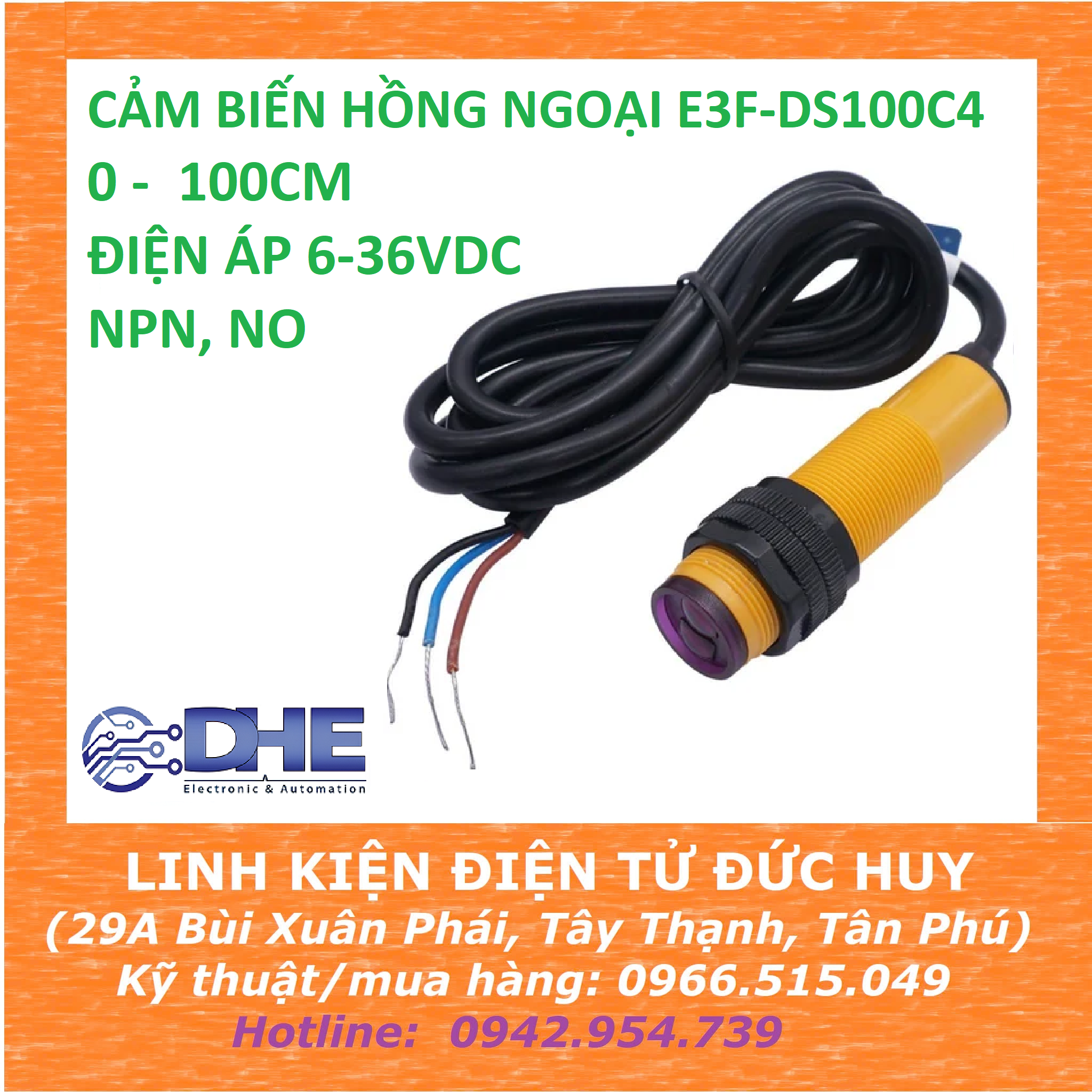 - Cảm biến vật cản hồng ngoại E3F-DS100C4 là loại chất lượng tốt với độ bền và độ ổn định cao, cảm biến sử dụng ánh sáng hồng ngoại để xác định vật cản phía trước cảm biến, cảm biến phát ra tia hồng ngoại với dải tần số chuyên biệt cho khả năng chống nhiễu tốt kể cả ở điều kiện ánh sáng ngoài trời.