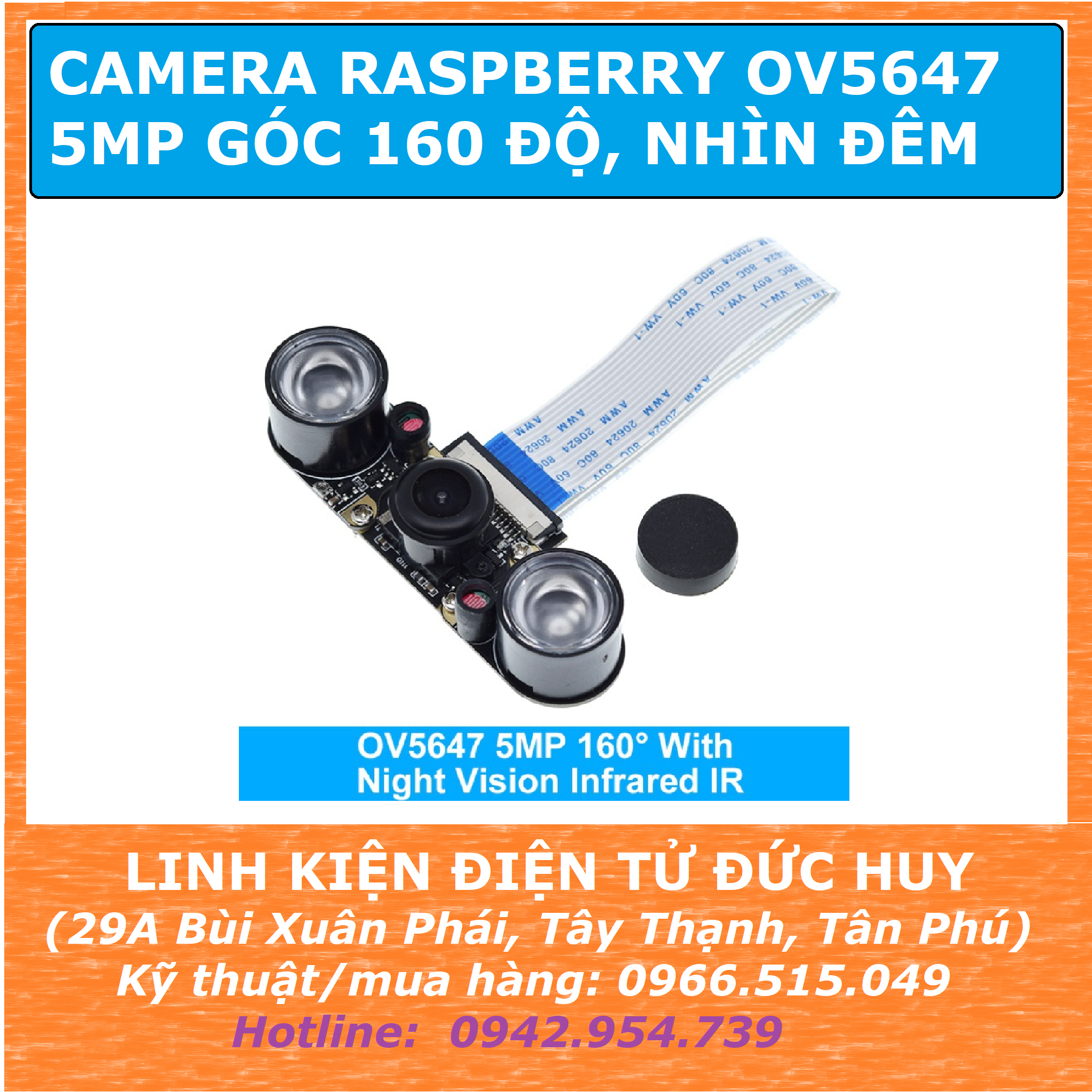 CAMERA OV5647 RASPBERRY 5MP GÓC NHÌN 160 ĐỘ, NHÌN ĐÊM