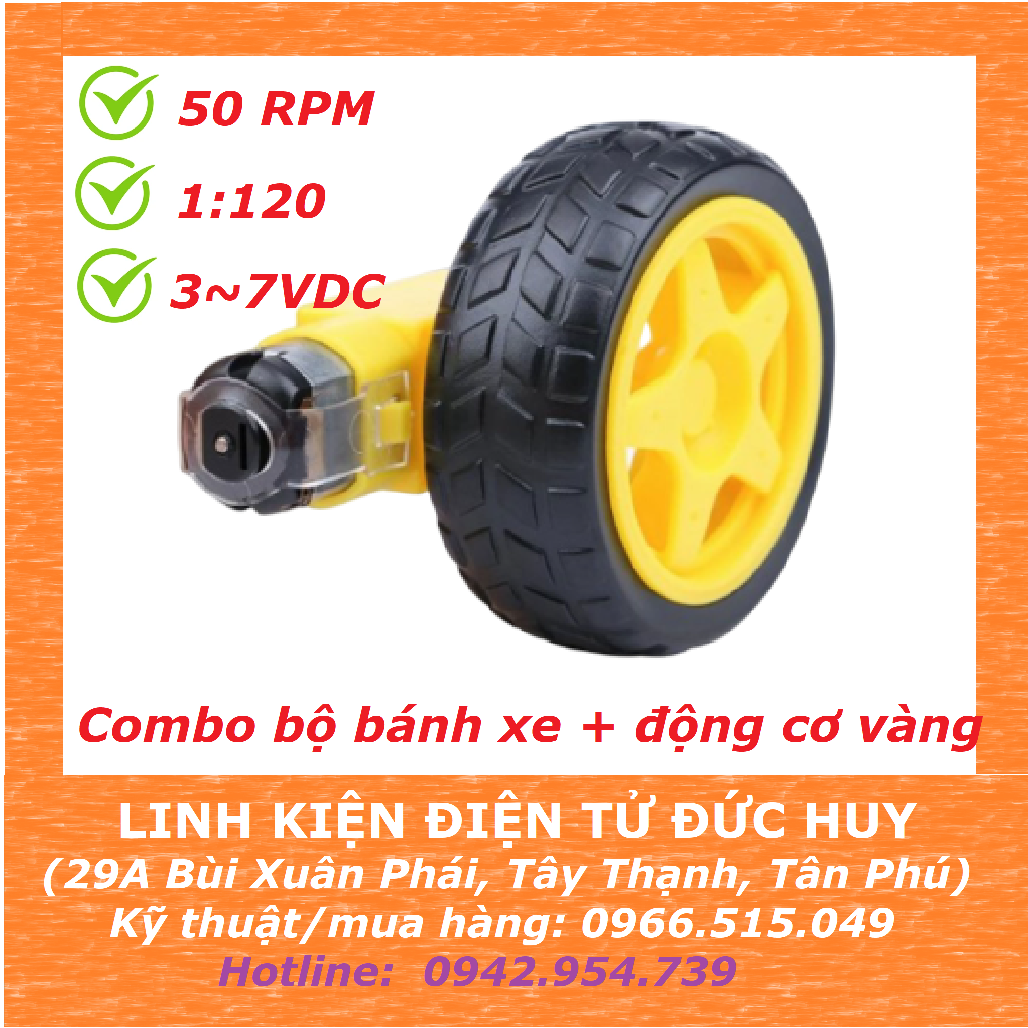 Combo bánh xe và động cơ vàng được sử dụng rộng rãi trong các xe robot mini tự hành, cấu trúc nhỏ gọn không cồng kềnh, giá thành rẻ phù hợp cho các bạn sinh viên nghiên cứu, đồ chơi trẻ em, và các sản phẩm hữu dụng khác.