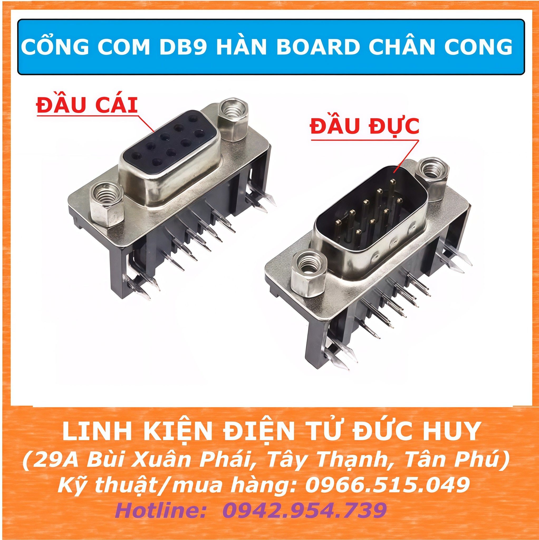 CỔNG COM DB9 HÀN BOARD CHÂN CONG là đầu nối chuẩn D-Sub 9 chân (DB9) chuyên dùng cho các thiết bị sử dụng giao tiếp RS232. Với thiết kế chân cắm cong, sản phẩm phù hợp để hàn trực tiếp lên bo mạch PCB, giúp việc bố trí giao tiếp COM (Serial) trên thiết bị trở nên gọn gàng và chuyên nghiệp.