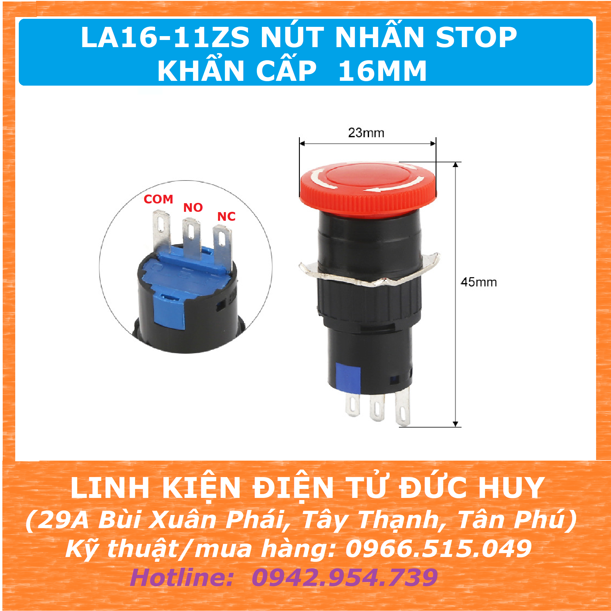 CÔNG TẮC NÚT NHẤN KHẨN CẤP STOP LA16 11ZS, PHI 16MM là sản phẩm nút nhấn thường được lắp trong tủ điện, hộp box...với chức năng STOP dùng để ngắt điện toàn hệ thống khi có sự cố khẩn cấp xảy ra, nhằm ngăn chặn các chuỗi hư hỏng, cháy nổ, hoả hoạn, và được phục hồi bằng cách xoay nắm theo hình mũi tên trên mặt nút để phục hồi cấp điện lại cho hệ thống sau khi đã được khắc phục và sửa chữa.