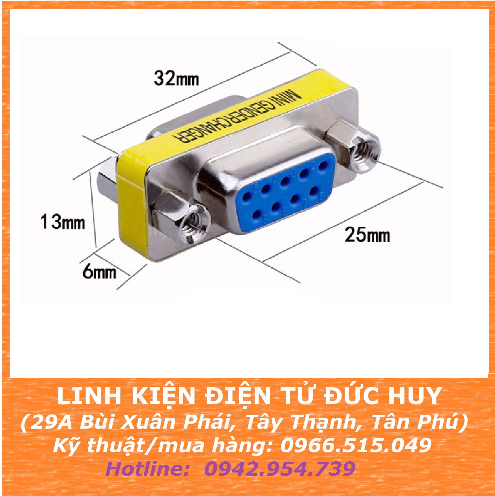 ĐẦU NỐI CỔNG COM DB9 ĐỰC SANG CÁI Sản phẩm giúp bạn bảo vệ đầu COM trên thiết bị, tăng tuổi thọ đầu nối RS232, DB9.