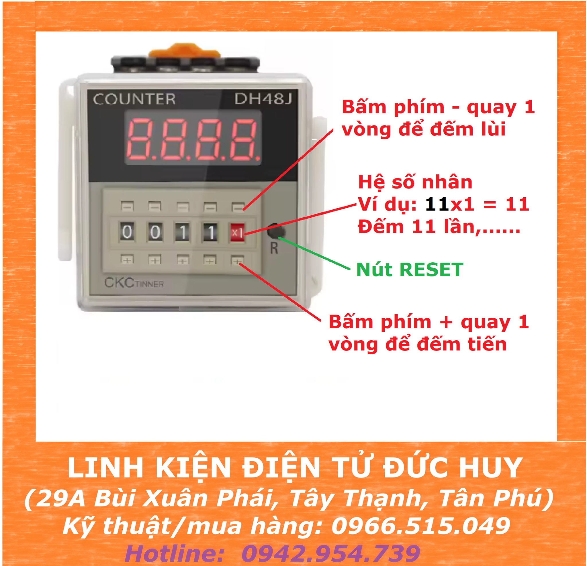DH48J-8A 12VDC bộ đếm sản phẩm counter 4 số, có chân reset