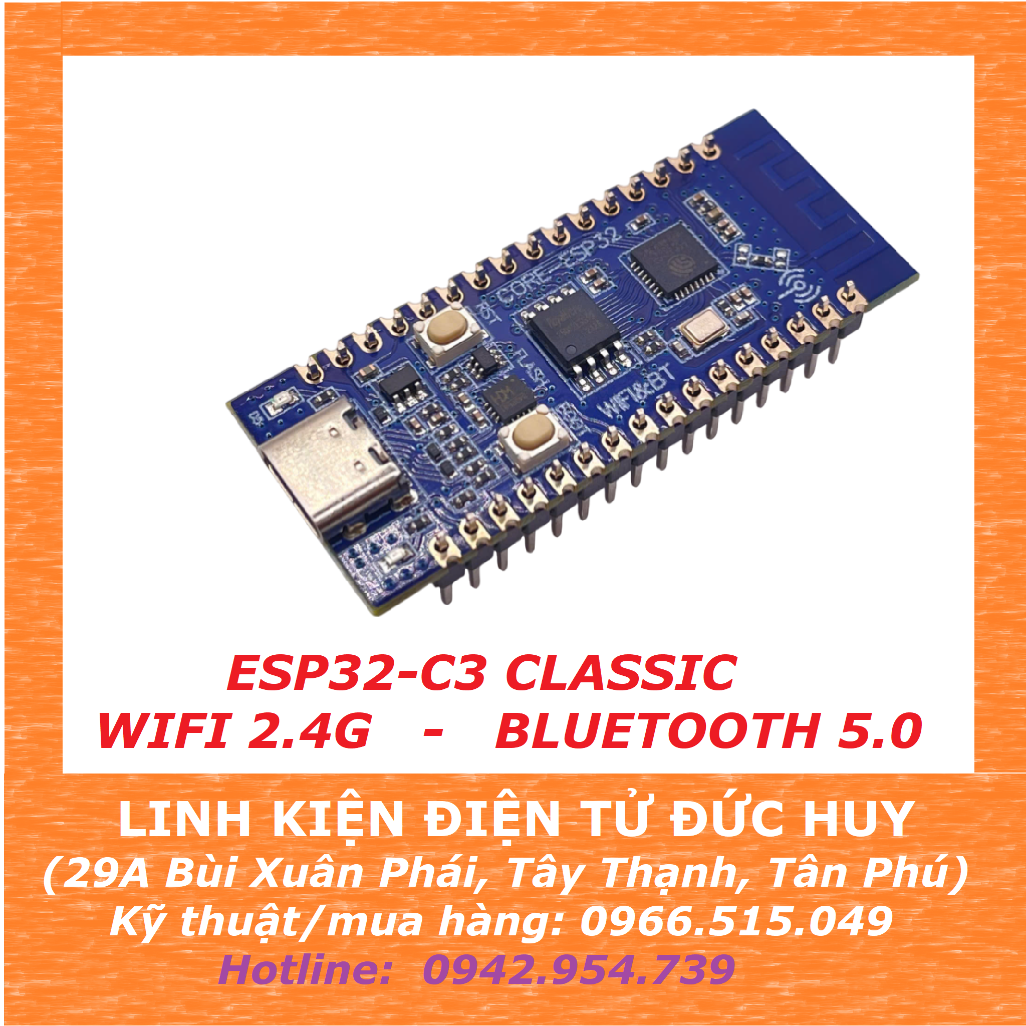 + ESP32- C3 classic 32P (đã hàn chân) là một board mạch phát triển mini IoT dựa trên chip chế độ kép WIFI/Bluetooth Espressif ESP32-C3