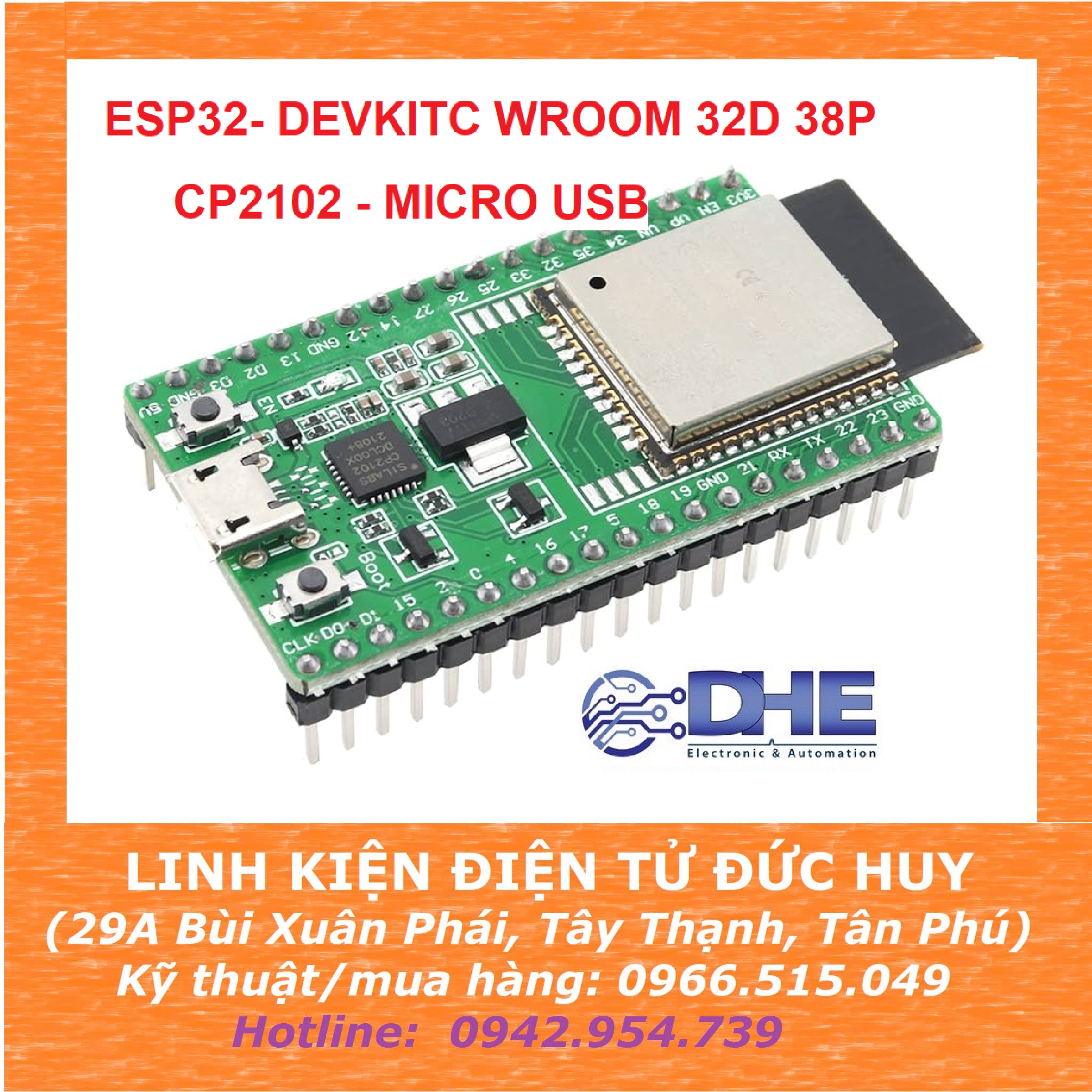 + Vi xử lý trung tâm: ESP32 - WROOM 32 (với lõi chip 32bit - Xtensa dual core 240Mhz)