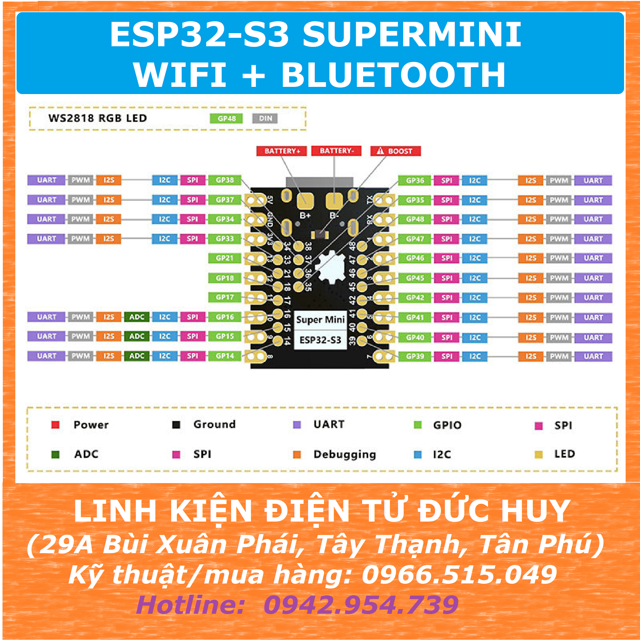 + Đèn LED RGB tích hợp onboard chân GPIO48