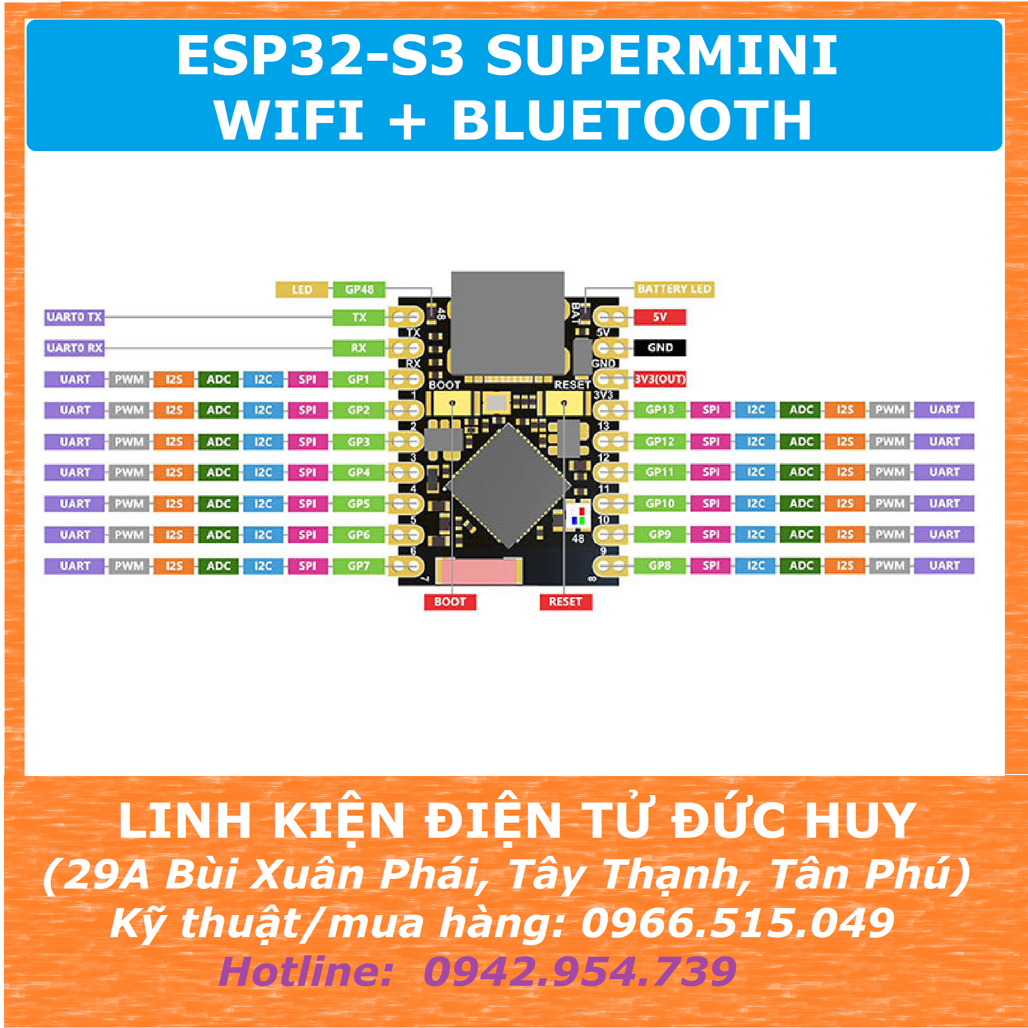 ESP32-S3 SuperMini là một bo mạch phát triển IoT mini dựa trên chip chế độ kép WiFi/Bluetooth ESP32-S3. ESP32-S3 có CPU RISC-V 32 bit với FPU có khả năng tính toán số học với độ chính xác 32 bit, cung cấp khả năng tính toán mạnh mẽ.