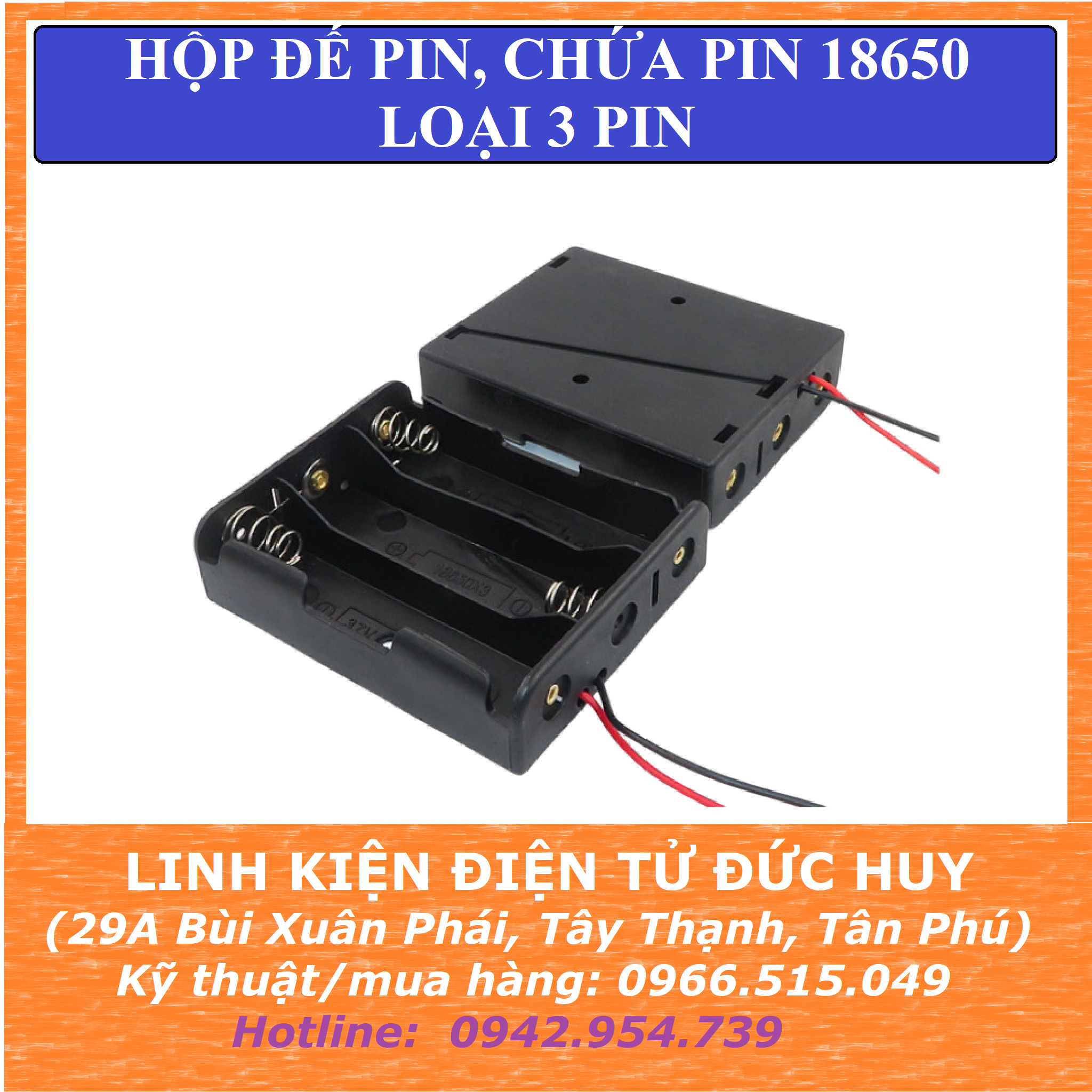 + Hộp đế nhựa chứa pin 18650 (1, 2, 3, 4 cell) chuyên dùng để làm hộp đựng pin 18650, có sẵn dây dẫn dài 10cm phân cực rõ màu đỏ, màu đen để dễ dàng đấu nối.