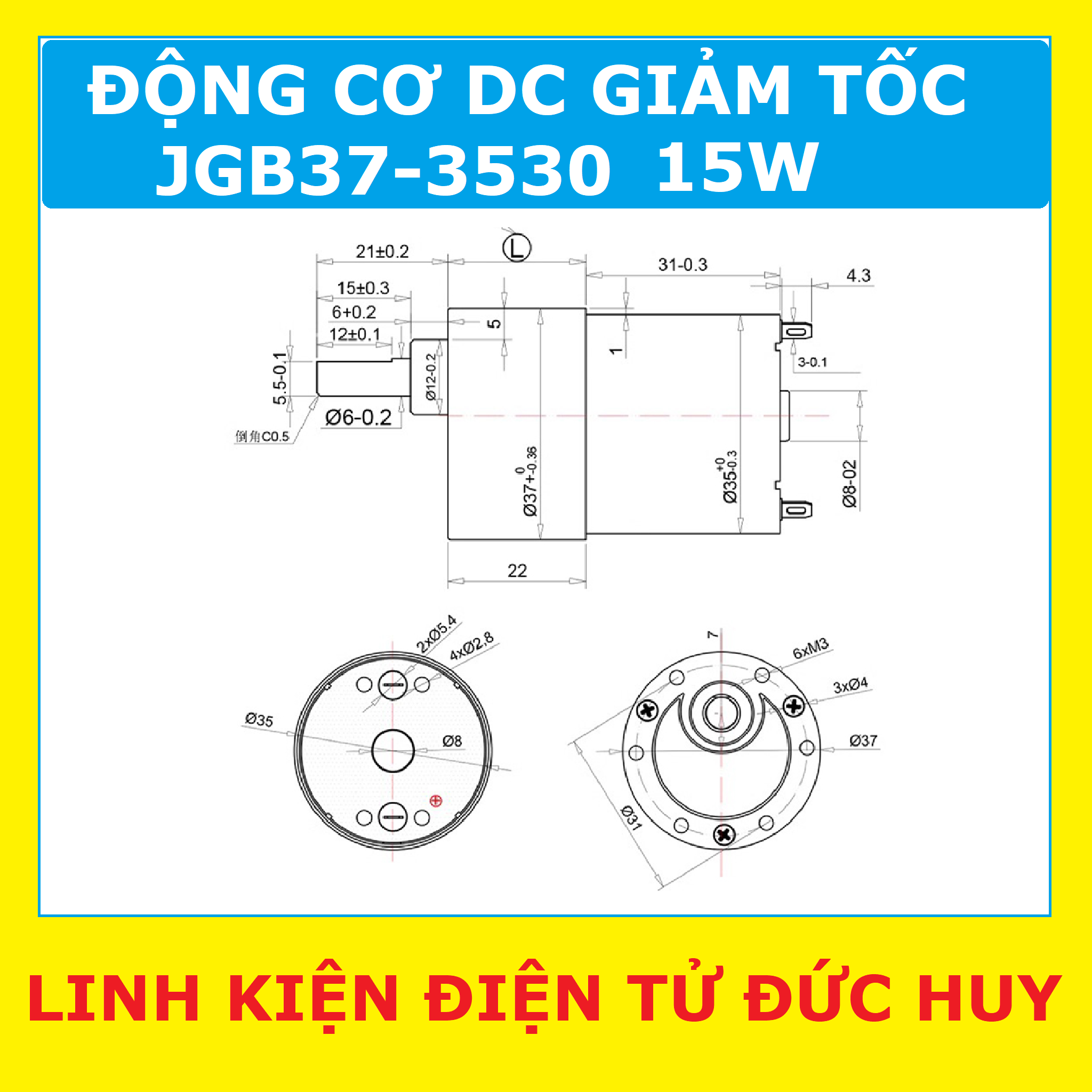 JGB37 3530 ĐỘNG CƠ GIẢM TỐC DC 24V 86RPM (moment xoắn cao) 15W