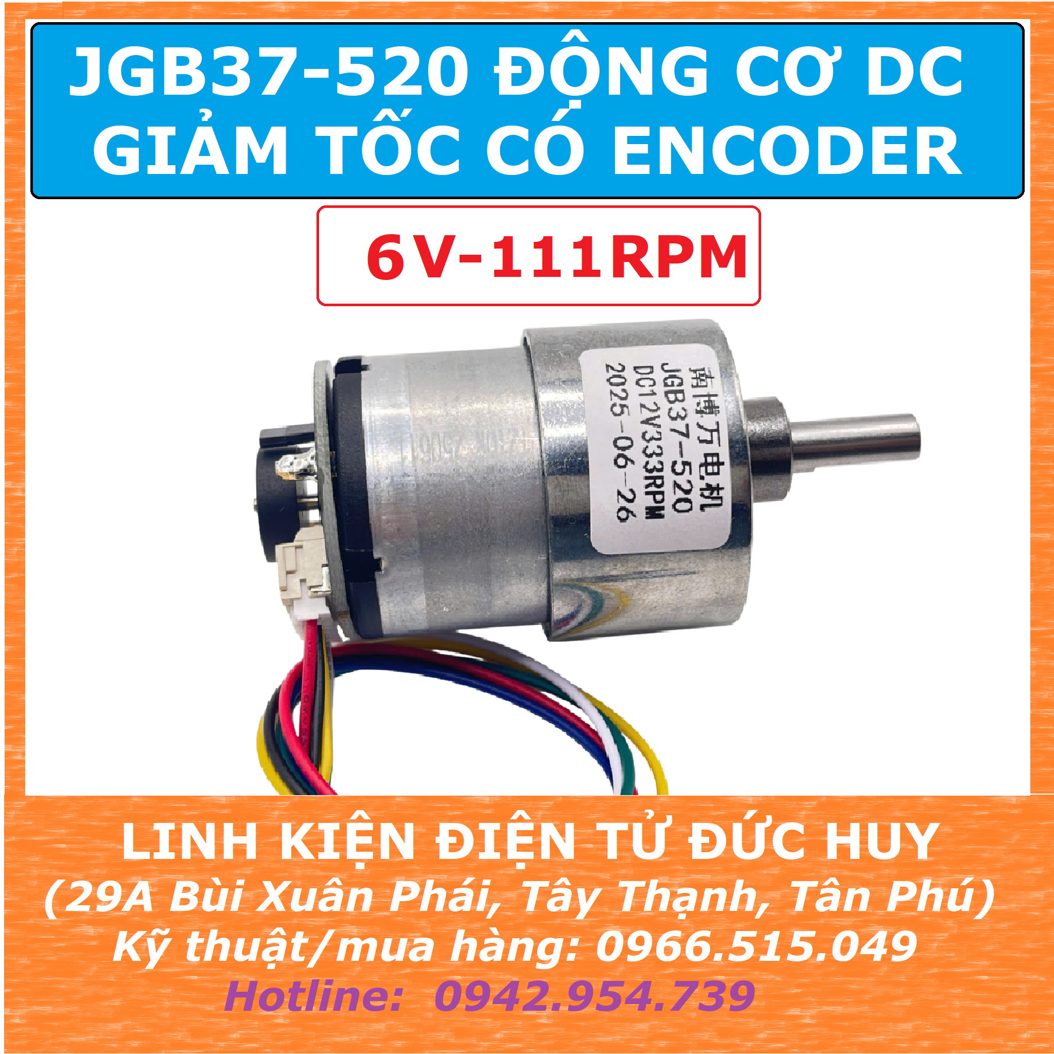 JGB37 520 ĐỘNG CƠ DC GIẢM TỐC ENCODER 6V 111RPM