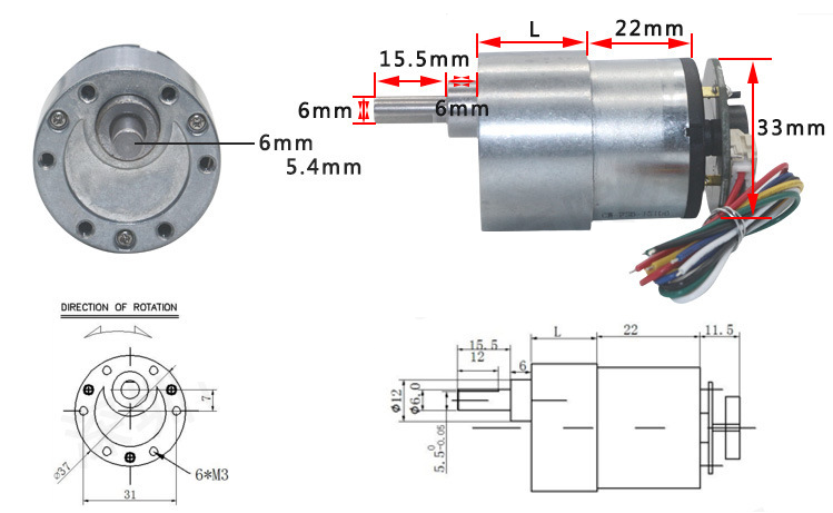 JGB37 520 ĐỘNG CƠ DC GIẢM TỐC ENCODER 6V 176RPM