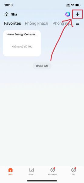 2.2 Cấp nguồn cho module và mở ứng dụng Tuya Smart → Chọn biểu tượng dấu “+” để thêm thiết bị.