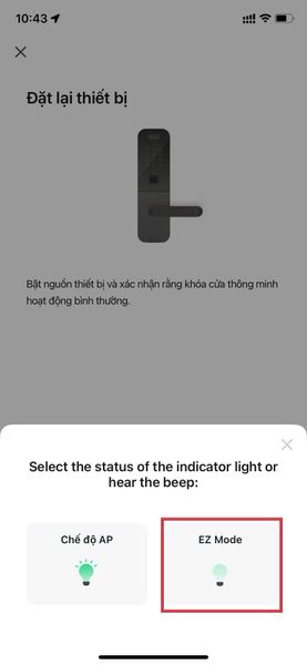 1.1 Nhấn nút SET đến khi nghe tiếng "bíp", đèn xanh sẽ nhấp nháy liên tục. Đặt ngón tay lên vùng lấy dấu vân tay. Sau khi nghe thấy tiếng "bíp" tiếp theo nhấc ngón tay lên và nhấn xuống lần nữa. Lặp lại thao tác này 5-6 lần. Khi nghe thấy tiếng nhạc, nghĩa là việc đăng ký vân tay đã thành công. Bạn có thể tiếp tục đăng ký vân tay mới. Nếu không đăng ký trong vòng 5 giây, quá trình đăng ký sẽ tự động thoát. (Dấu vân tay được đăng ký bằng nút SET này không được liên kết với điện thoại di động và không thể xóa khỏi điện thoại).