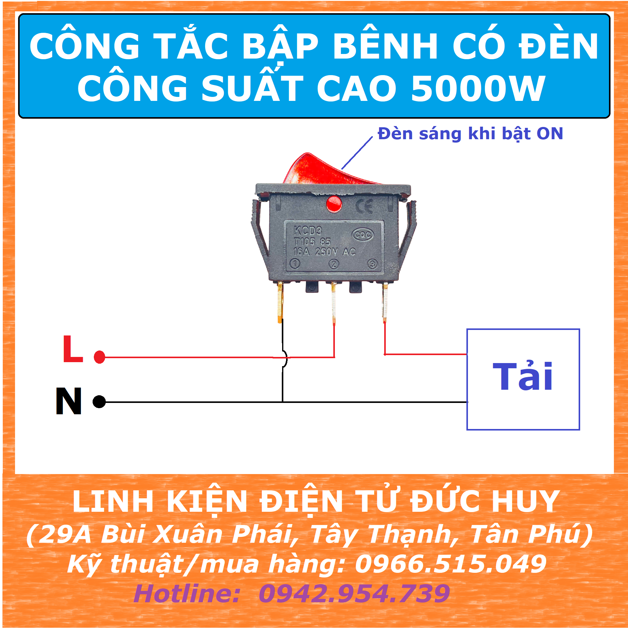 + Dòng tải tối đa: 20A 125VAC, 16A 250VAC