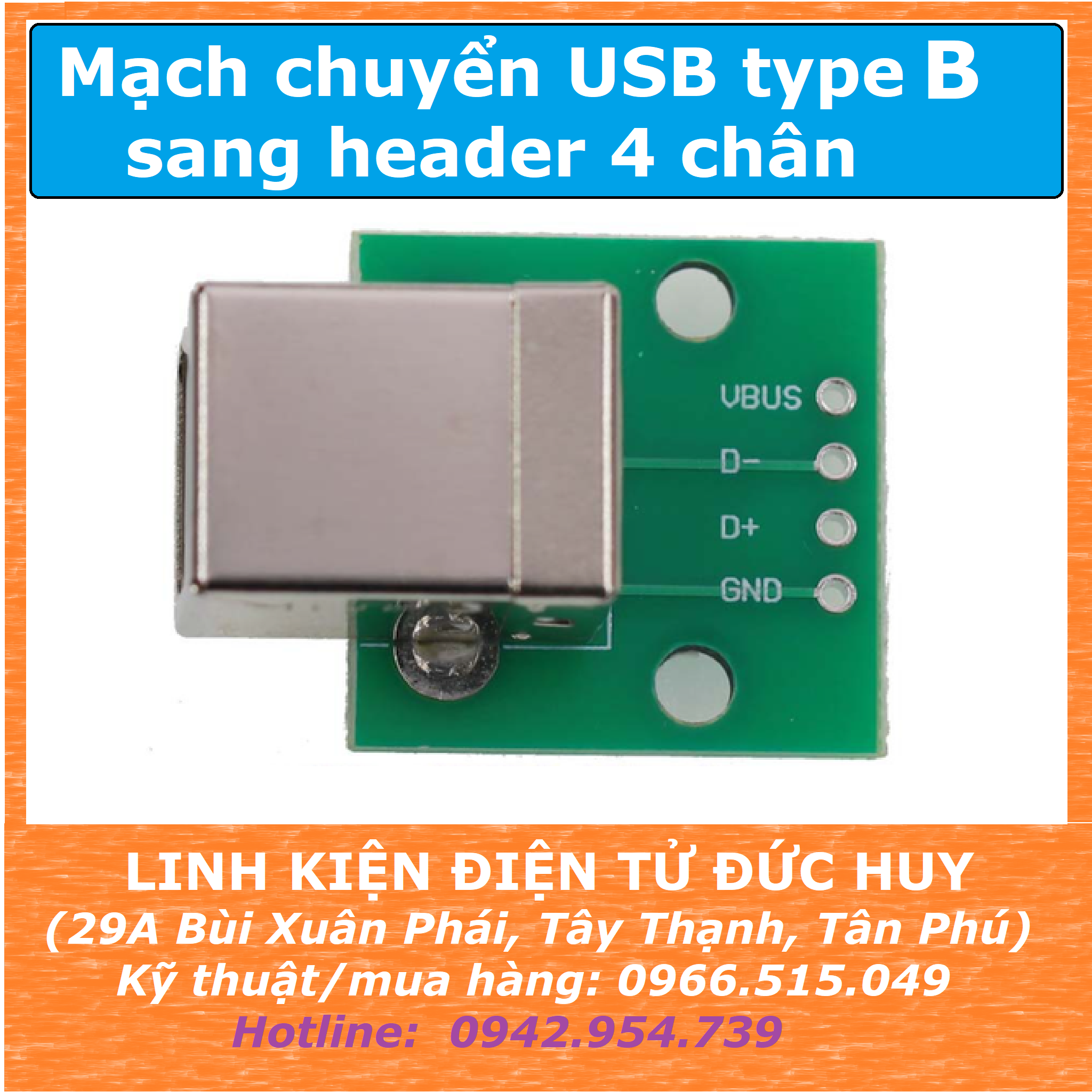 MẠCH CHUYỂN USB TYPE B sang header 4 DIP 4 (4 CHÂN)