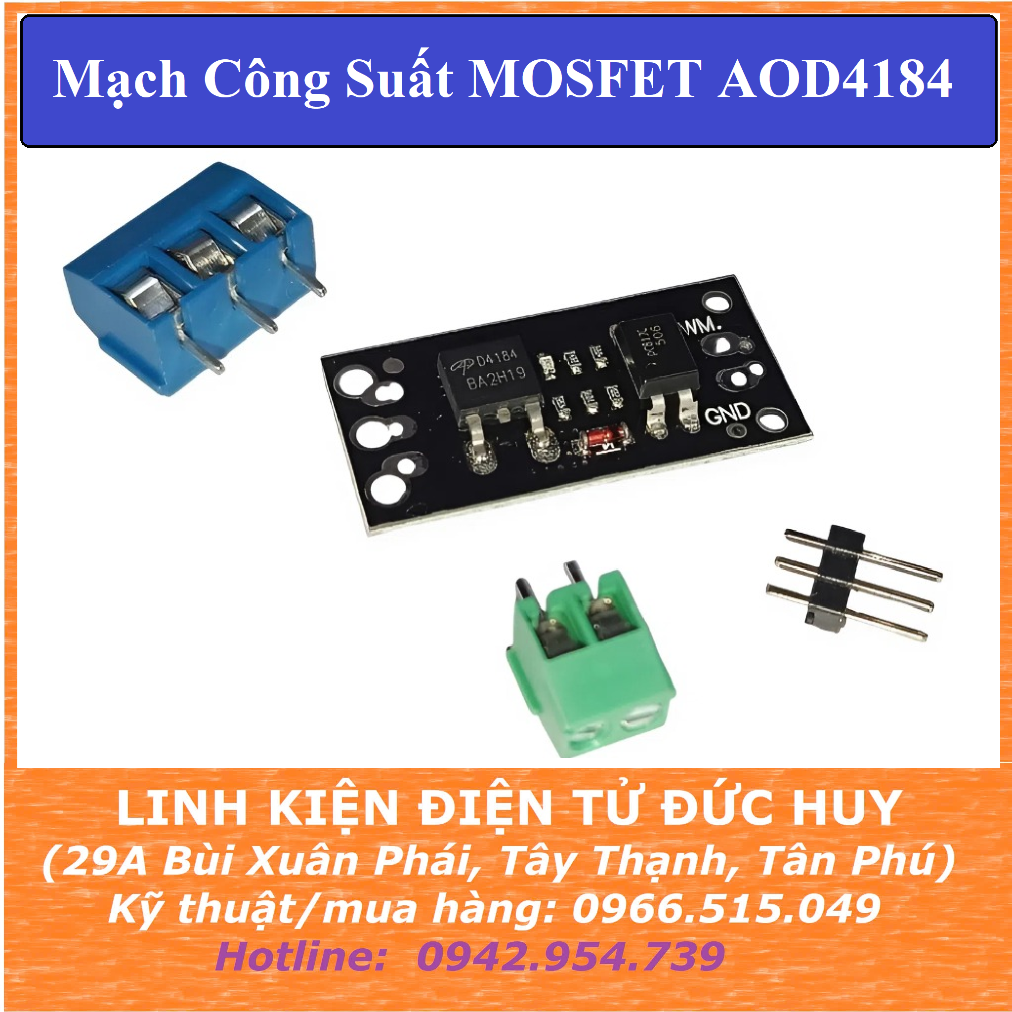 Mạch công suất MOSFET AOD4184 opto cách ly được sử dụng để kích tải công suất cao, mạch có Opto cách ly tín hiệu kích đầu vào, thiết kế nhỏ gọn, dễ sử dụng.