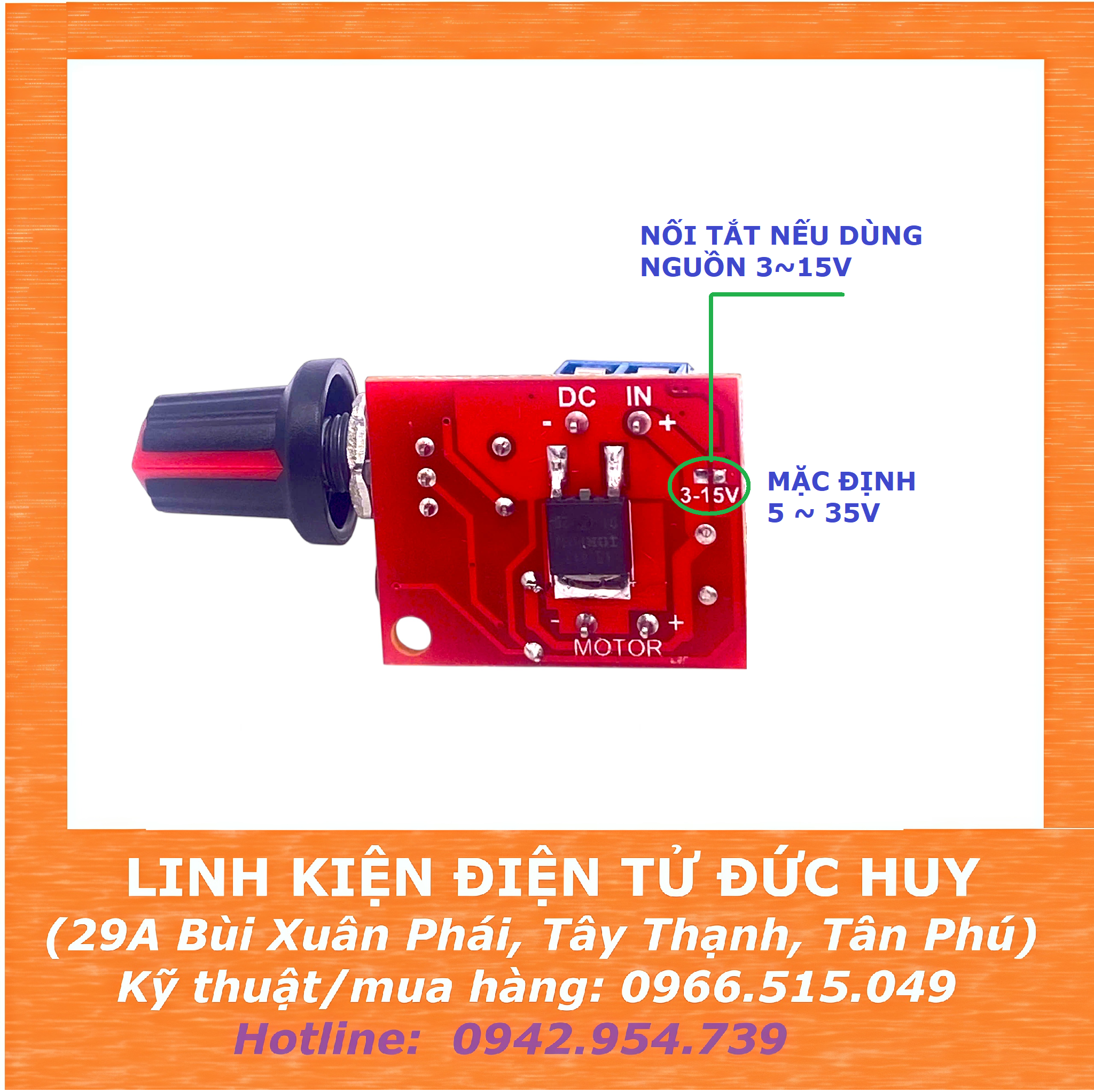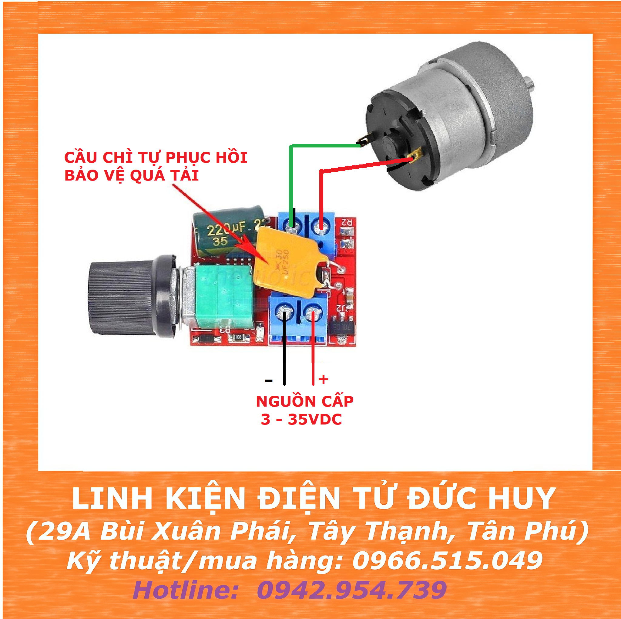 MẠCH DIMMER ĐIỀU KHIỂN TỐC ĐỘ ĐỘNG CƠ DC PWM 5A 3 - 35V sử dụng phương pháp hạ điện áp xuống khi có tải đầu vào bằng cách điều chế xung PWM, công xuất lên đến 5A, điện áp vào rộng 3-35V, có cầu chì tự phục hồi sau vài giây, sản phẩm hoạt động ổn định, chi phí thấp để điều chỉnh điện áp DC, có thể làm mờ Led
