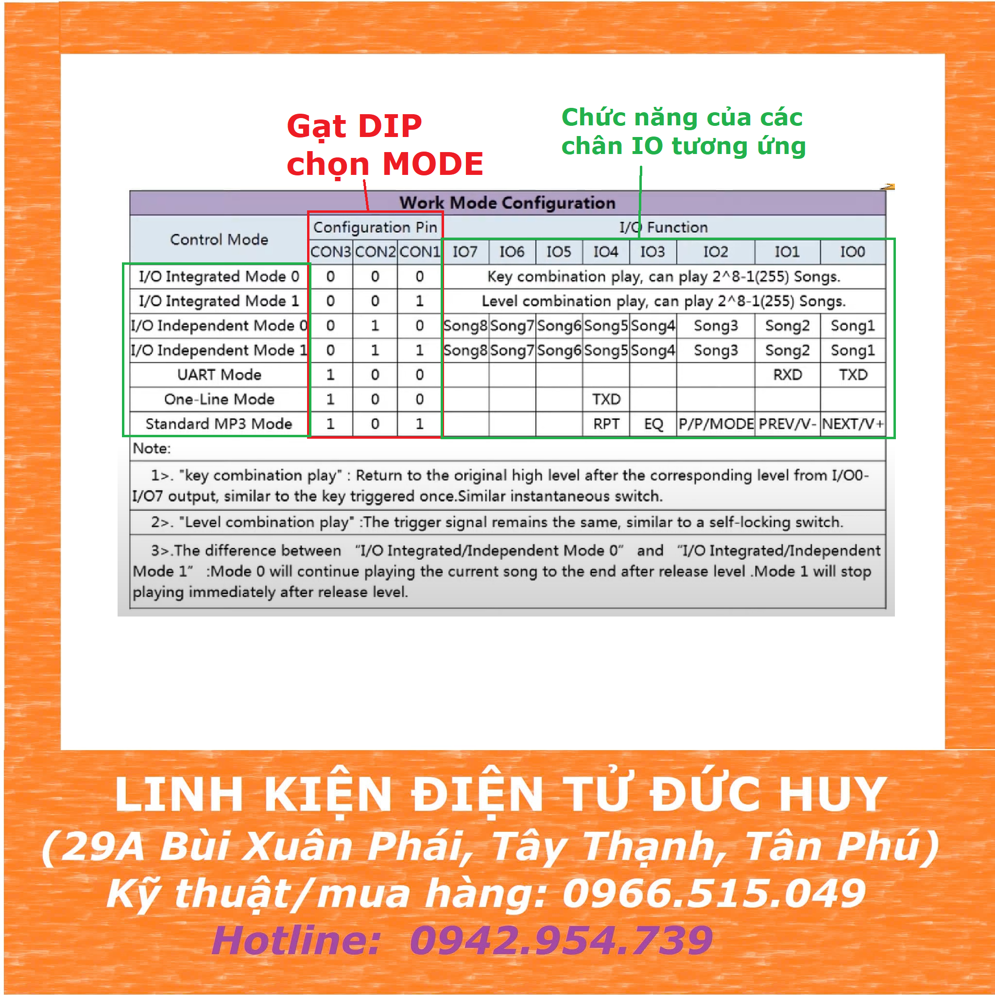 + Hỗ trợ 3 cấu hình I/O qua các Dip Switch gạt lựa chọn chế độ để tạo ra 7 chế độ làm việc.