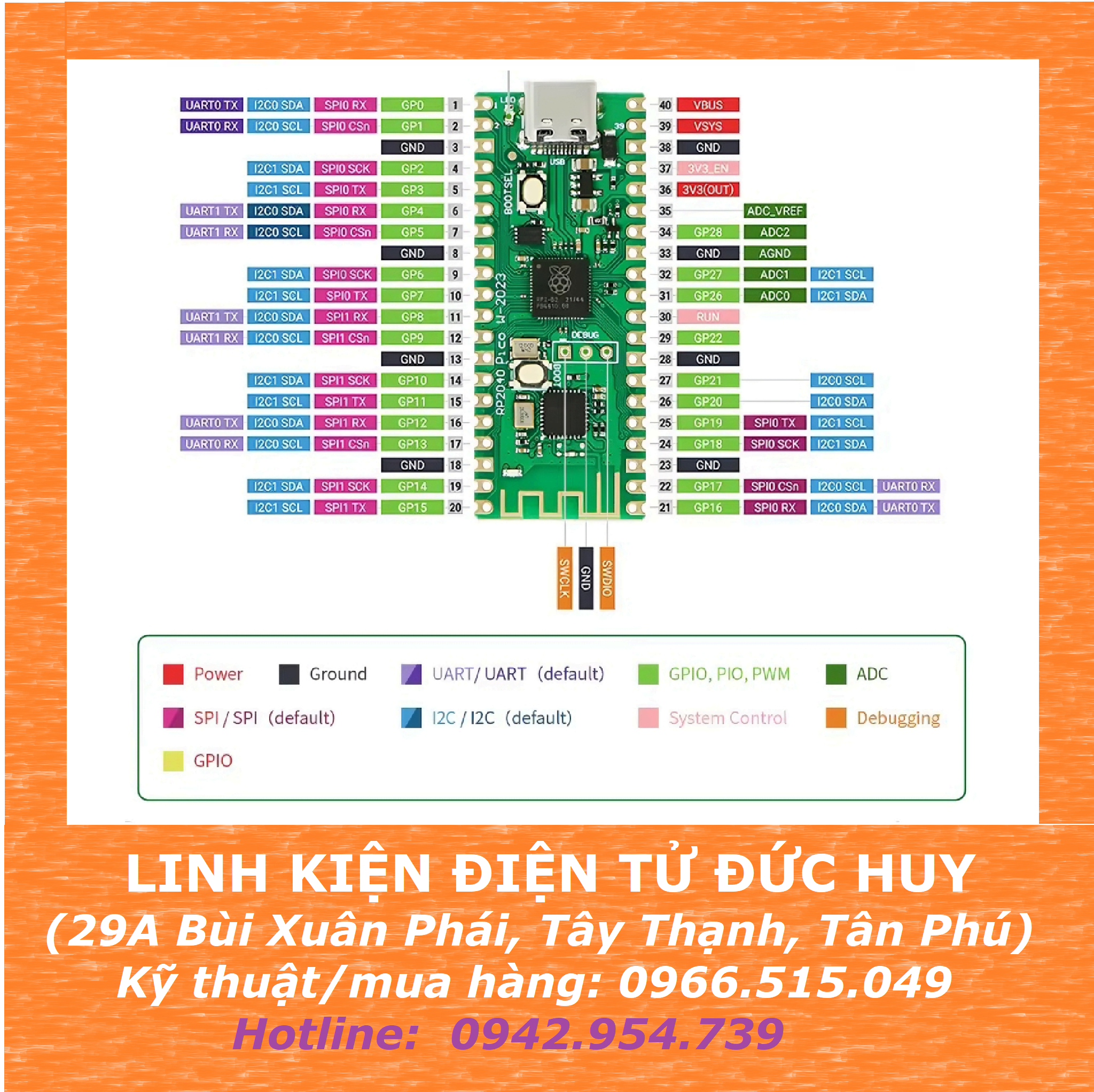 - Vi điều khiển: RP2040 ARM Cortex-M0+ Dual Core;