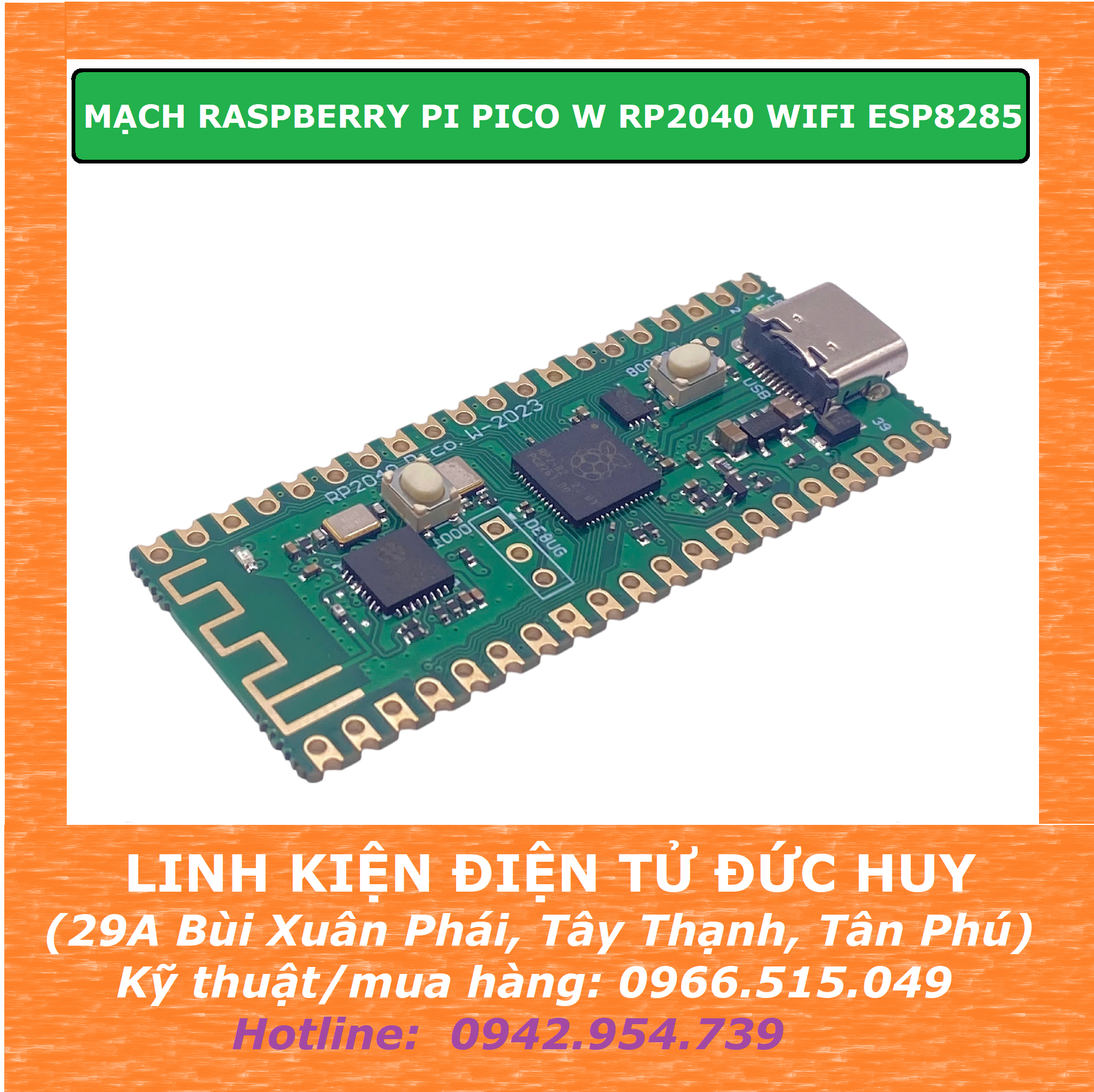 MẠCH RASPBERRY PI PICO W RP2040 + WIFI ESP8285 tích hợp công nghệ không dây với ESP8285. Chip chính của nó là RP2040 mạnh mẽ, với hai lõi ARM Cortex-M0+ và tốc độ xung nhịp lên đến 133 MHz. Ngoài ra, chip ESP8285 cho phép kết nối với mạng không dây 2,4 GHz thông qua lệnh AT.