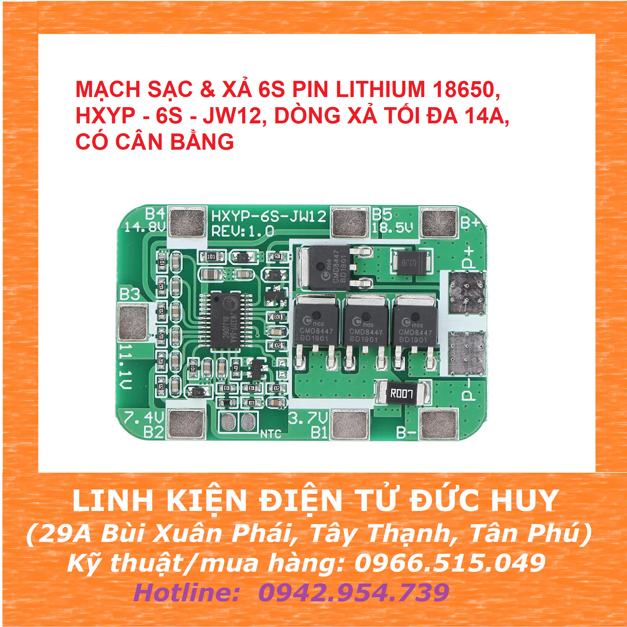 - 6 dây (cho 6 pin 18650 hoặc pin lithium polymer mắc nối tiếp)