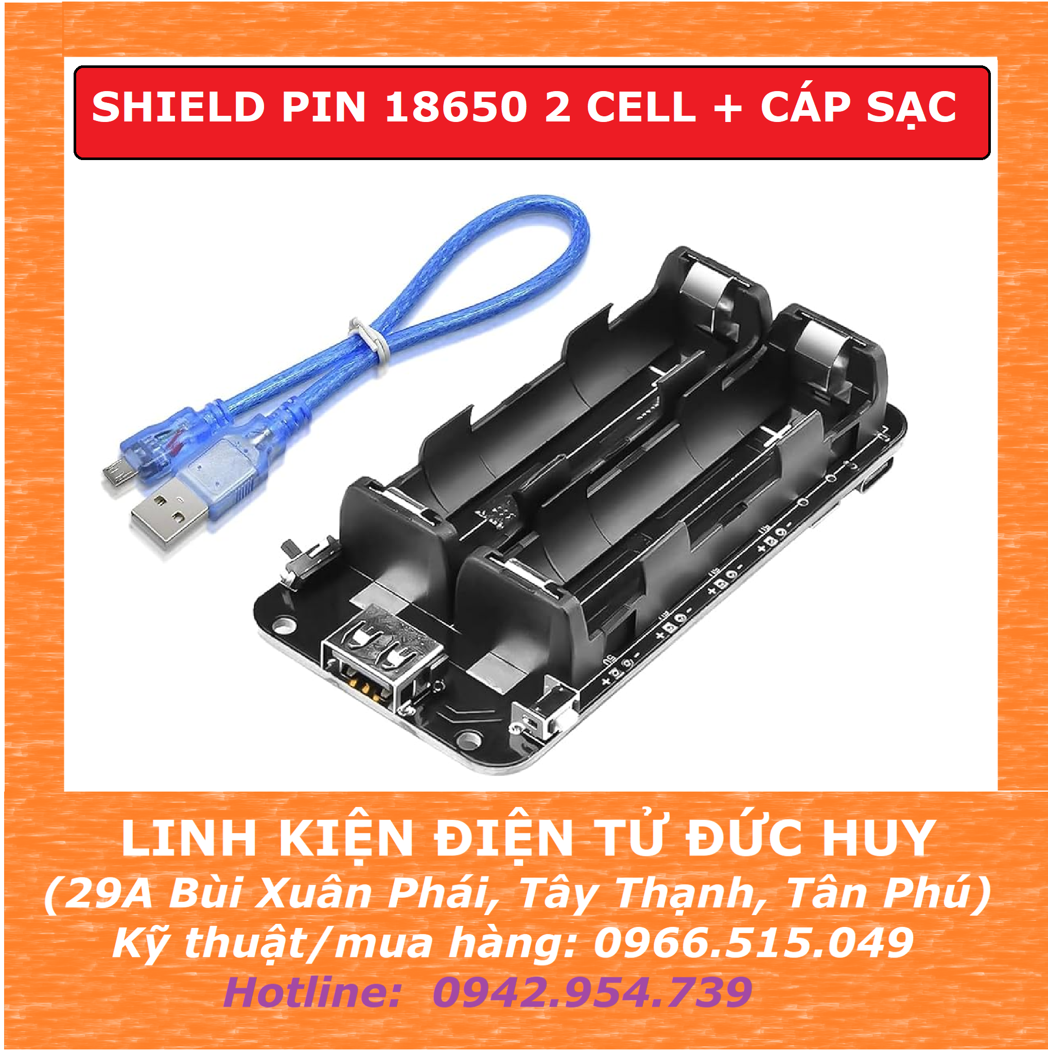 18650 Battery Shield được sử dụng trong các giải pháp cấp nguồn bằng pin cho Arduino, ESP8266, ESP32, Raspberry Pi,..., mạch được tích hợp mạch sạc pin chuyên dụng và IC chuyển áp từ pin sang 5VDC (USB, Pinout Header) / 3VDC (Pinout Header) để cấp nguồn bằng pin cho vô số các ứng dụng khác nhau, mạch có chất lượng linh kiện và gia công tốt, độ bền cao.