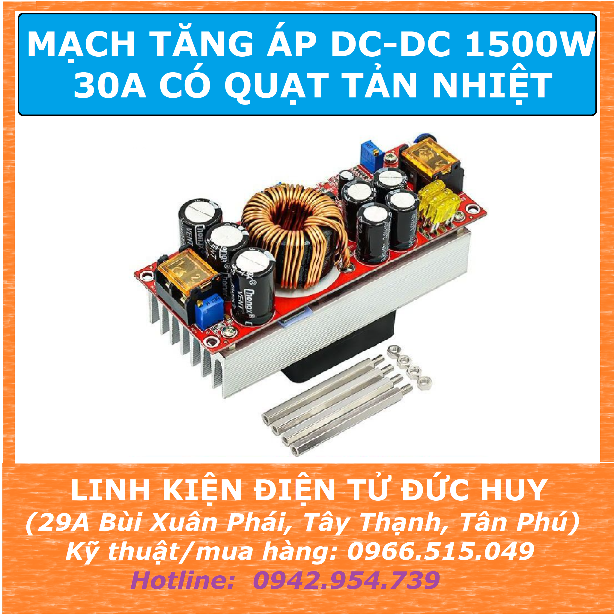 Tăng áp từ 10-60VDC lên 12-90VDC dòng điện ngõ ra lên tới 25A hiệu suất chuyển đổi lên tới 97%. Mạch được tích hợp sẵn tụ lọc hai đầu cho đầu ra có độ gợn sóng thấp. Tích hợp sẵn quạt tản nhiệt giúp mạch hoạt động bền bỉ và lâu dài.