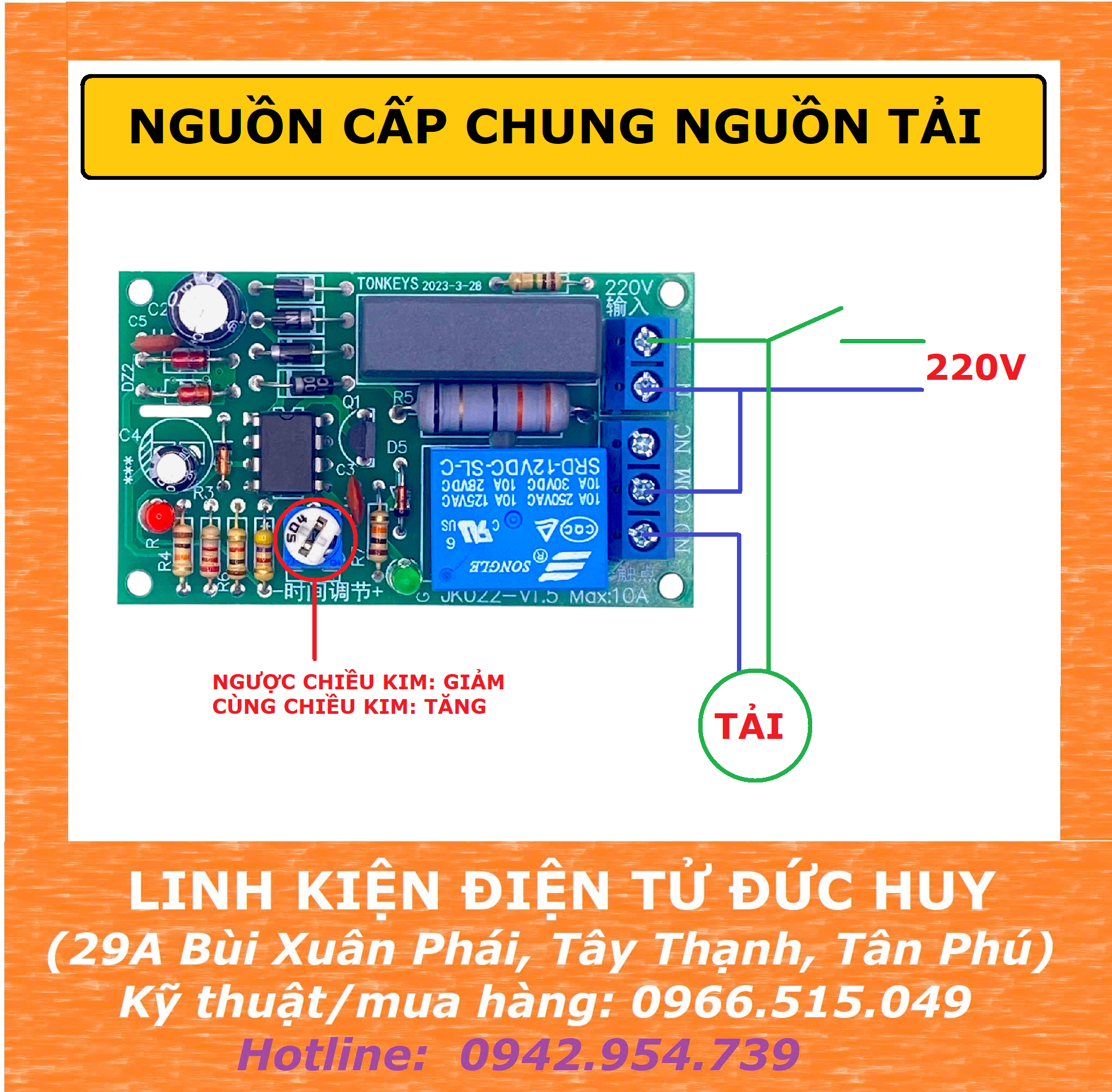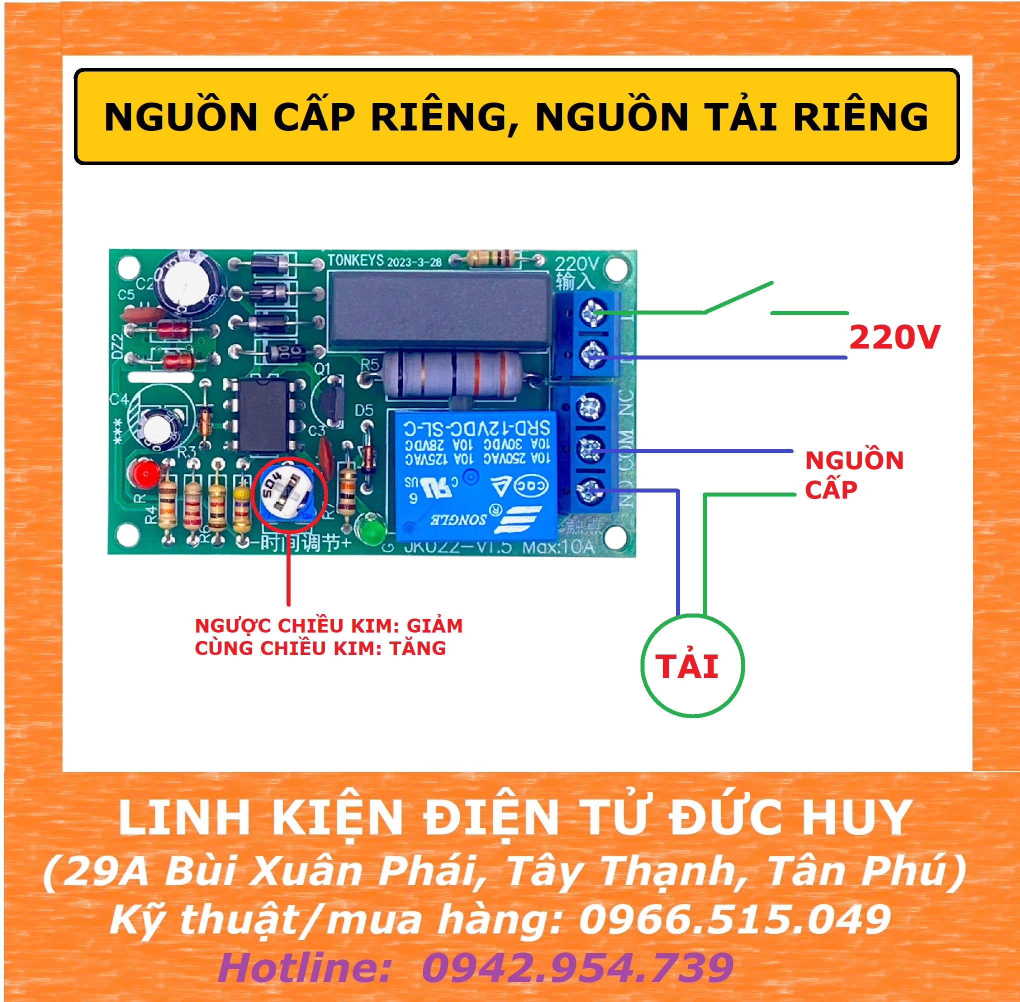 JK022 - A MẠCH TẠO TRỄ 220V ( TIMER OFF ) 0 - 5 GIÂY LÀ LOẠI TIMER, KHI CÓ NGUỒN, KÍCH RELAY, ĐẾM THỜI GIAN NGẮT RELAY.