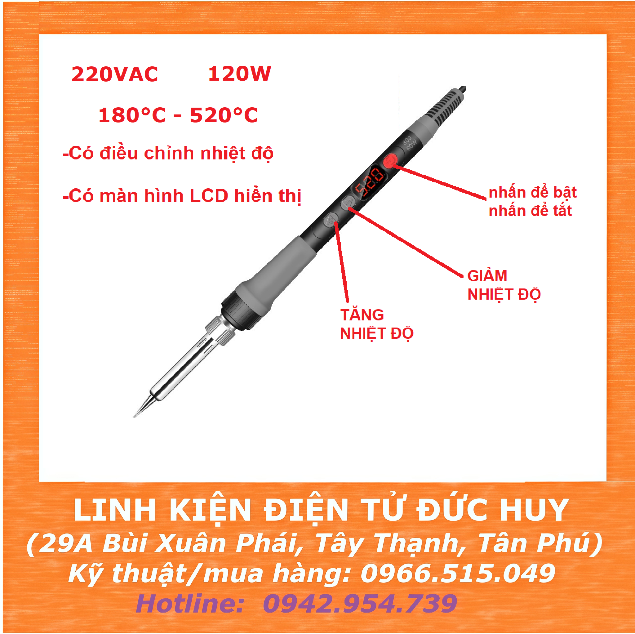 -Nhiệt độ hoạt động: 180 - 520 độ C