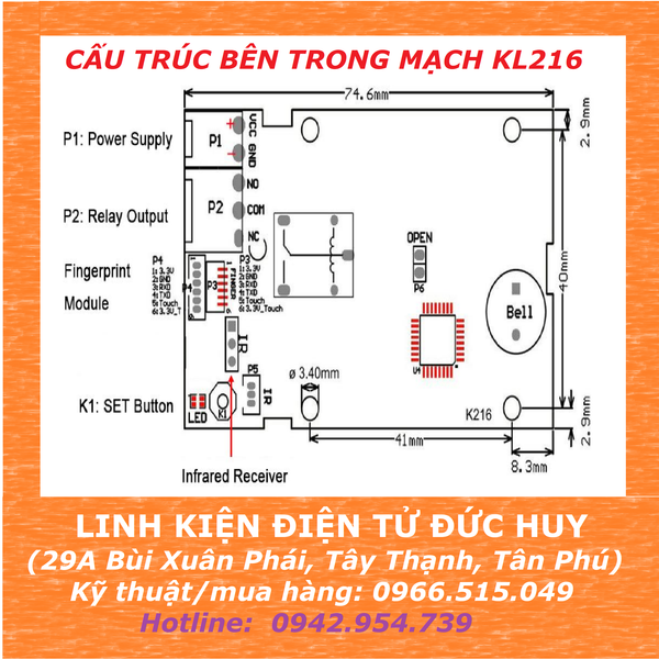 Mạch Giải Mã Vân Tay KL216 Kèm Remote: