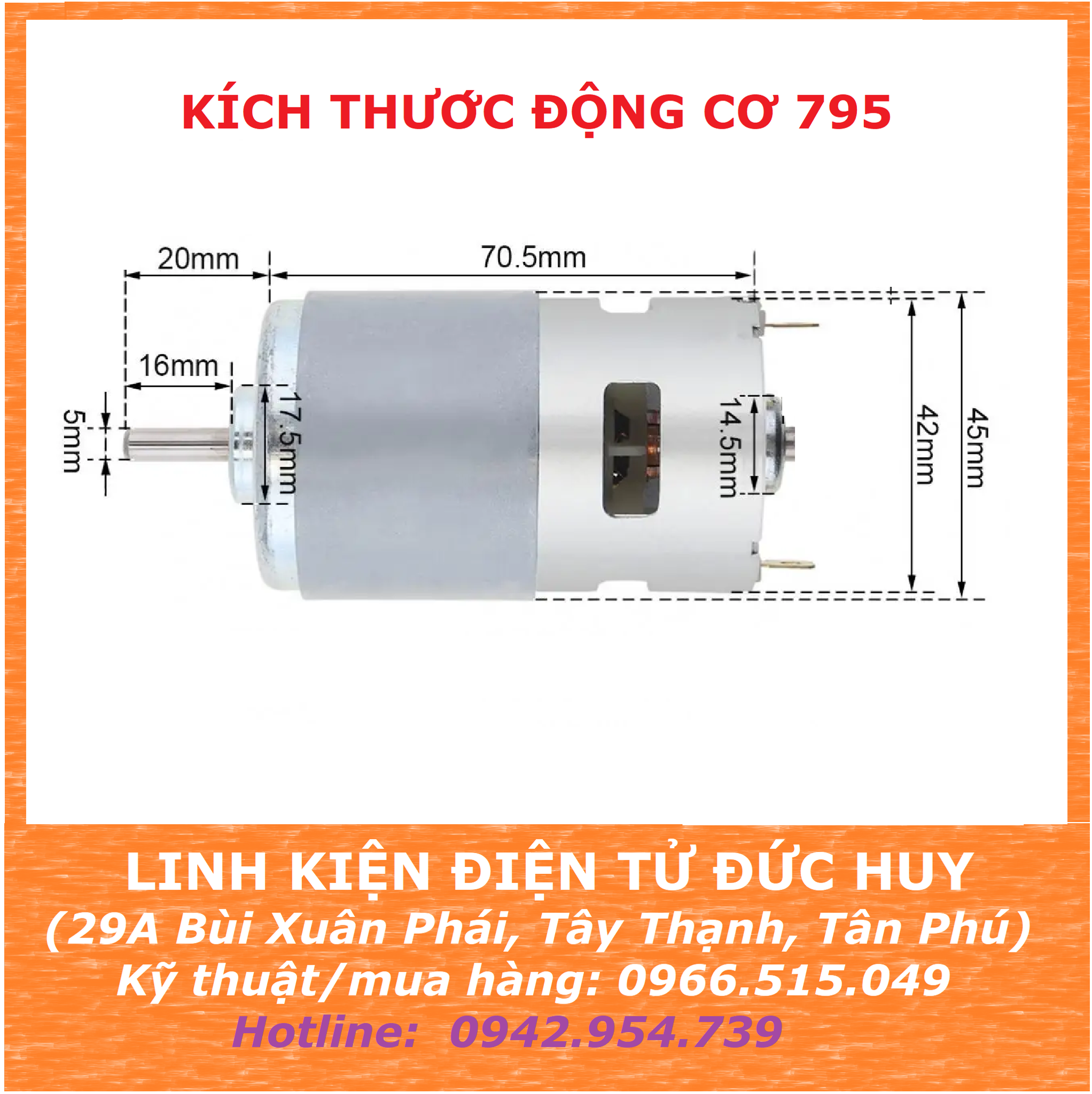 Motor 795 trục tròn 300W - 12V ~ 24V có tốc độ cao, mô men xoắn lớn, siêu khỏe, thích hợp cho tất cả các loại dụng cụ điện DIY, thích hợp cho việc sản xuất các mô hình có mô-men xoắn lớn. Có thể dùng chế tạo máy cưa, máy cắt, máy chà, thích hợp trong việc làm mô hình học tập cho học sinh, sinh viên, thực tập sinh,…