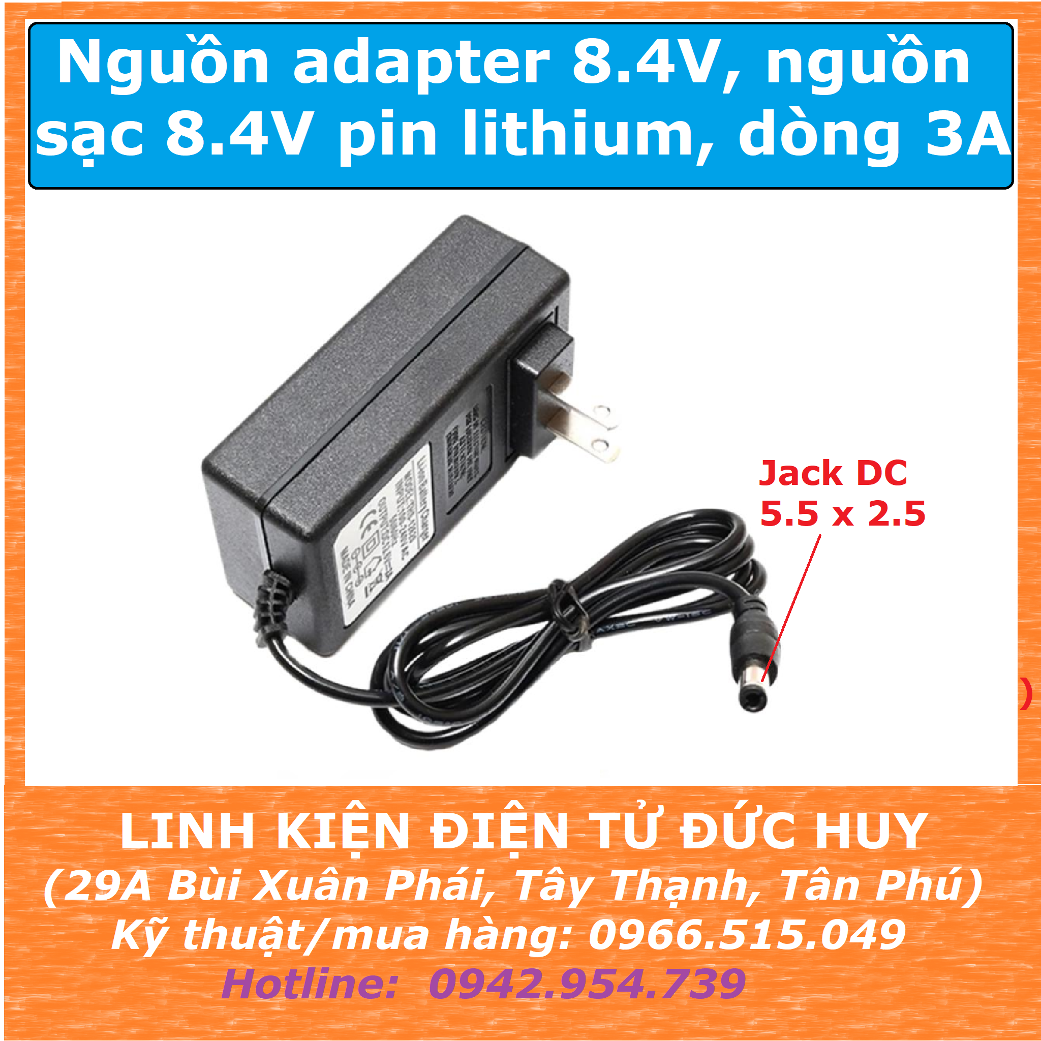 Nguồn adapter 8V4 8.4V 3A, sạc pin 8V4 8.4V 3A dùng sạc pin lithium là sản phẩm vừa có thể dùng làm nguồn cung cấp cho các thiết bị 9V, vừa có thể dùng chức năng sạc pin lithium 3.7V ghép nối tiếp 2S.