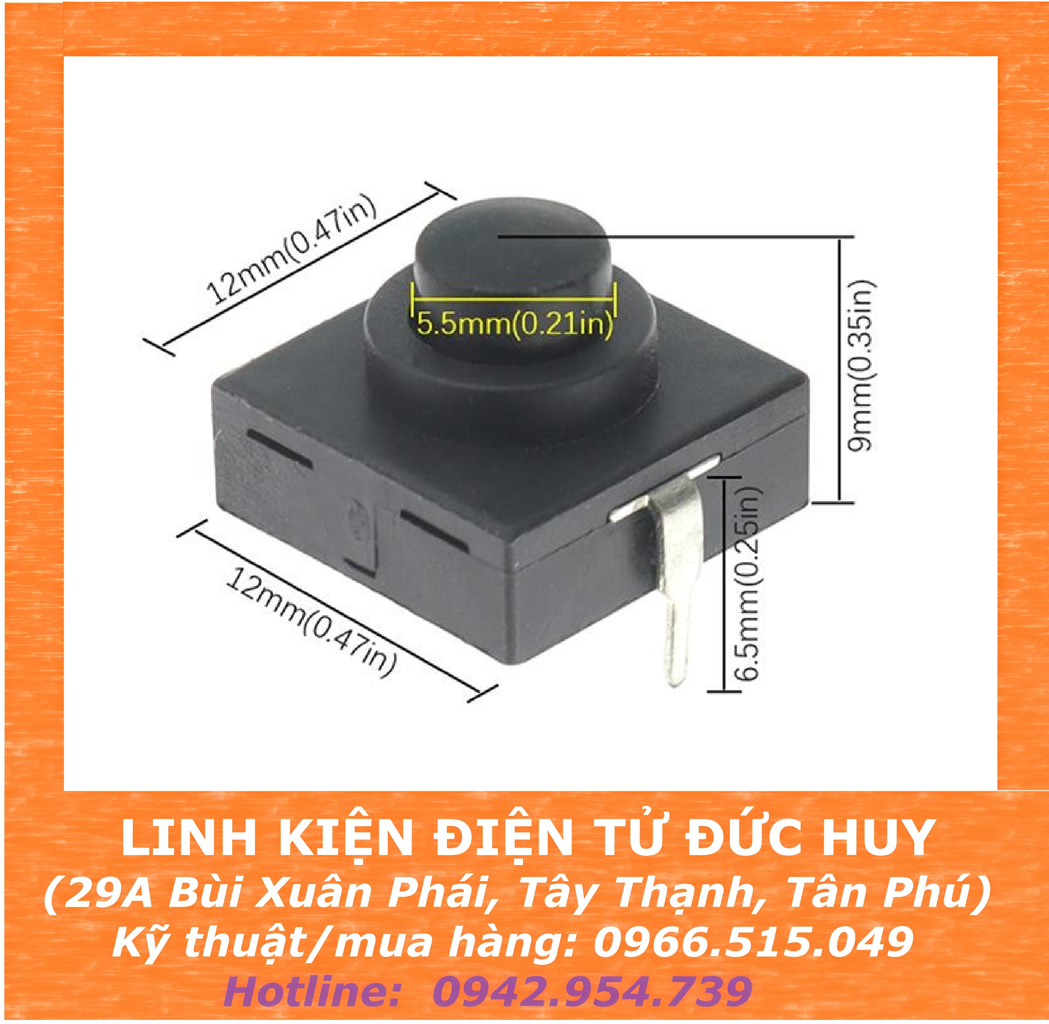 KAN 28 112D NÚT NHẤN ĐÈN PIN 12X12X6 2 CHÂN được sử dụng thay thế, làm công tắc đèn pin, công tắc on off nguồn.