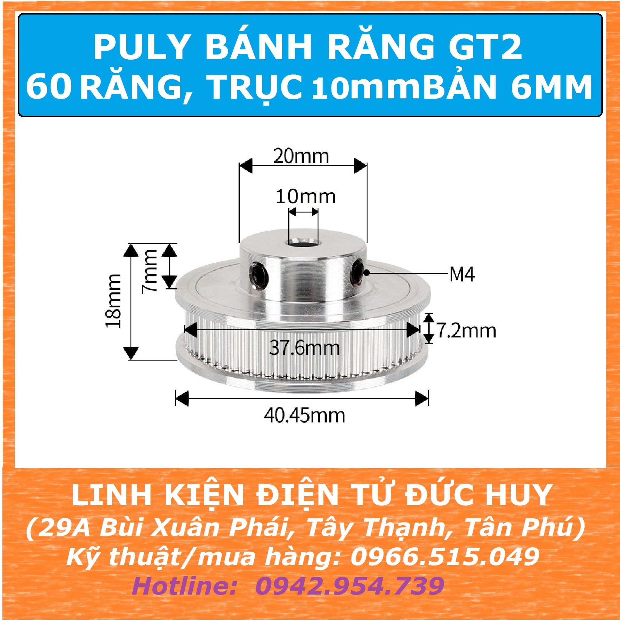 - Puli 60 răng GT2 là lựa chọn phổ biến nhất khi chế tạo máy in 3D và một số máy CNC mini, ứng dụng trong các chi tiết cơ khí, mô hình...