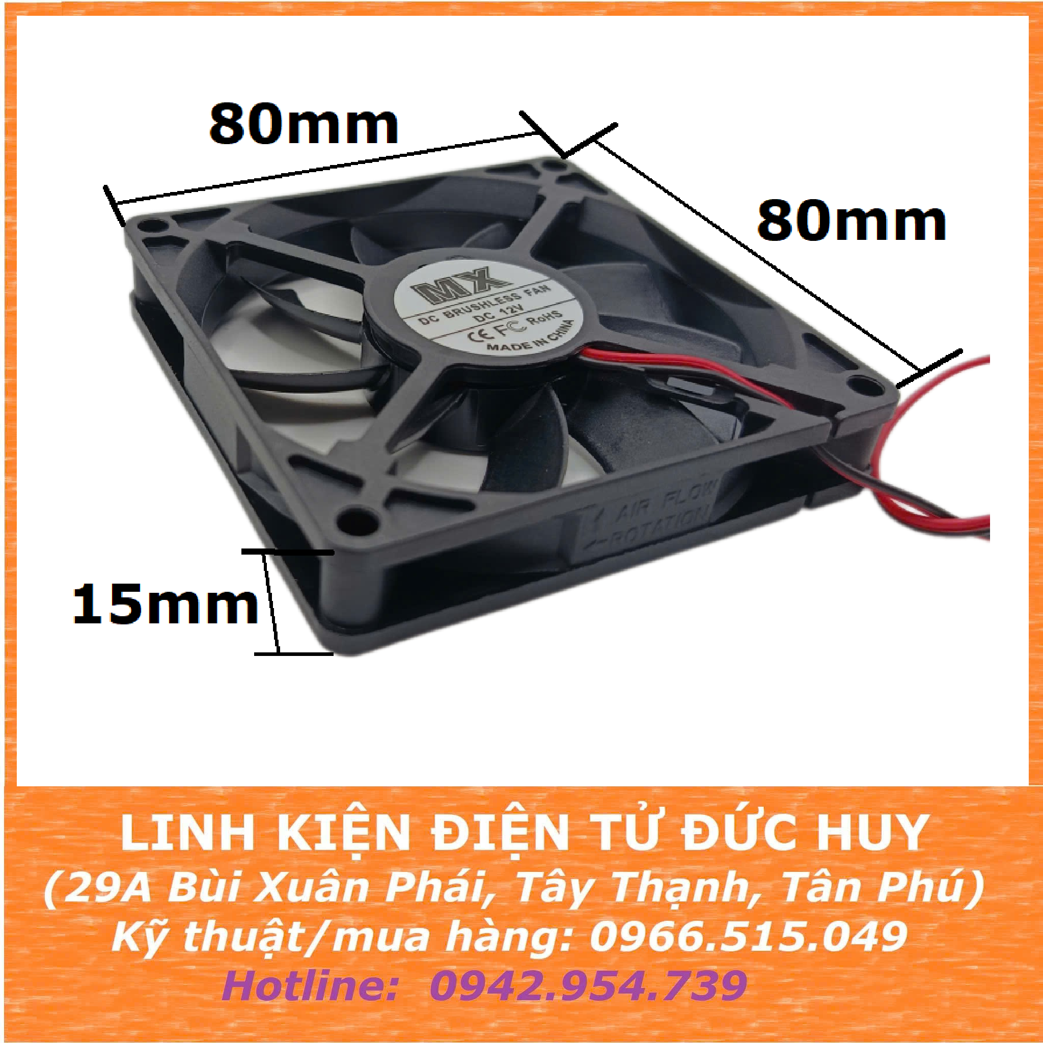 THÔNG SỐ KỸ THUẬT:Điện áp: 5/12V/24VDC Dòng điện: 0.2A Kích thước: 80*80*15mm  Tốc độ: 2400 (vòng/phút)         Nhiệt độ môi trường hoạt động (°C): -10°C ~ 70°C
