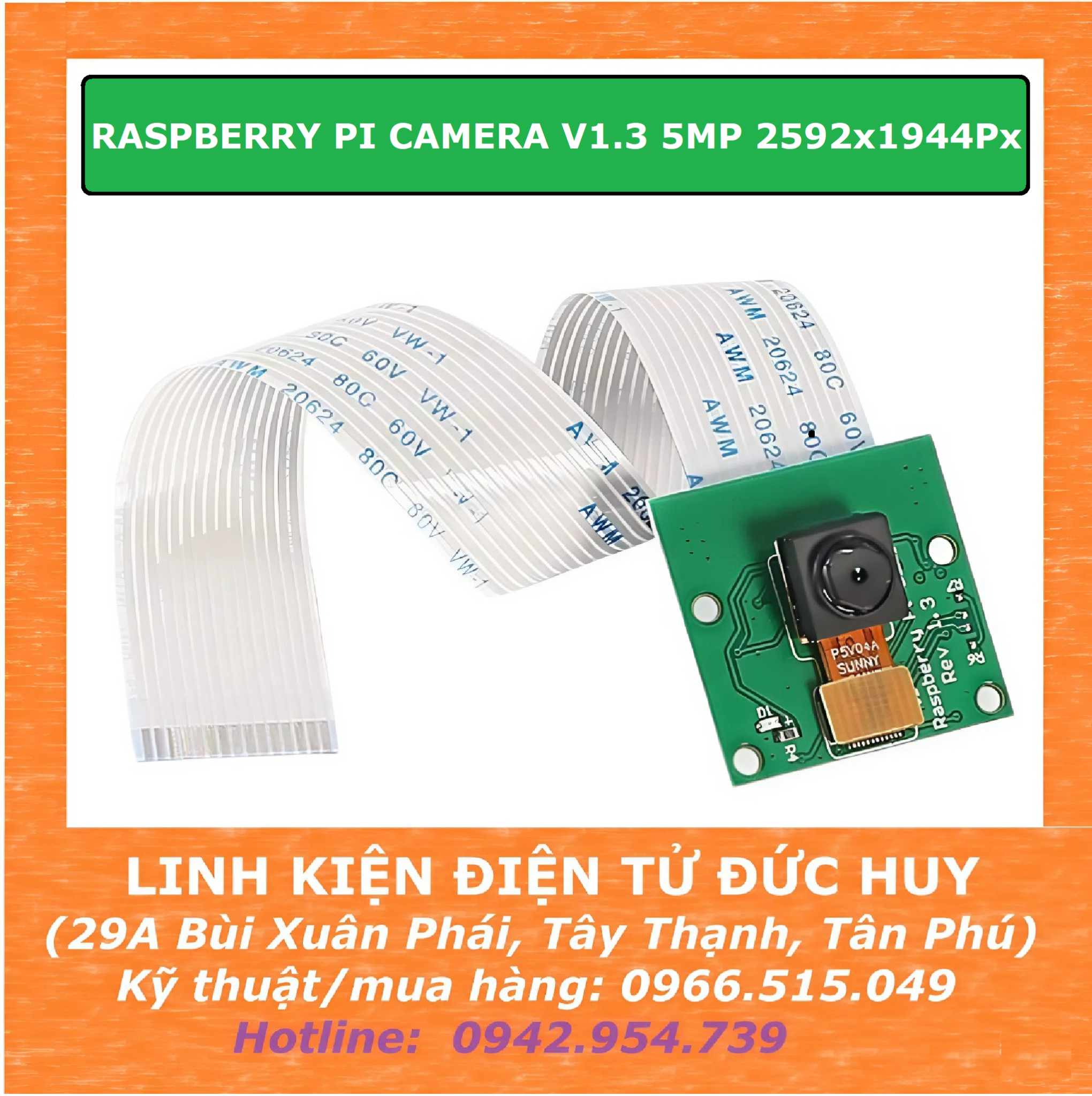 RASPBERRY PI CAMERA V1.3 OV5647 5MP 2592x1944Pixel là version đầu tiên của module camera cho Raspberry Pi với cảm biến OV5647 độ phân giải 5MP, sử dụng tương thích với tất cả các dòng Raspberry Pi đến nay( Pi 1 ,2,3), chất lượng hình ảnh tốt, độ phân giải cao và khả năng quay phim ở chất lượng HD.