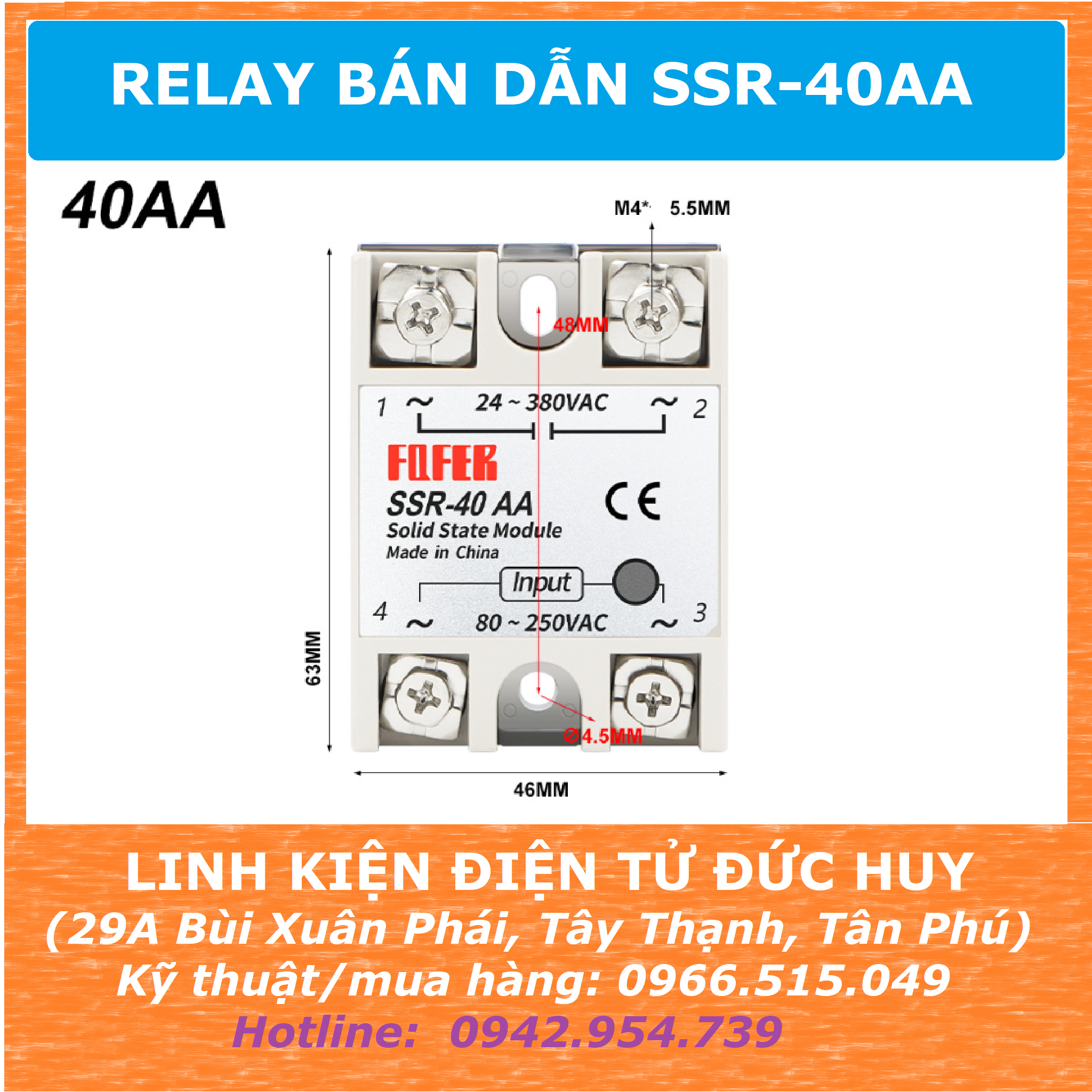 RELAY BÁN DẪN SSR 40AA (40 ampe)