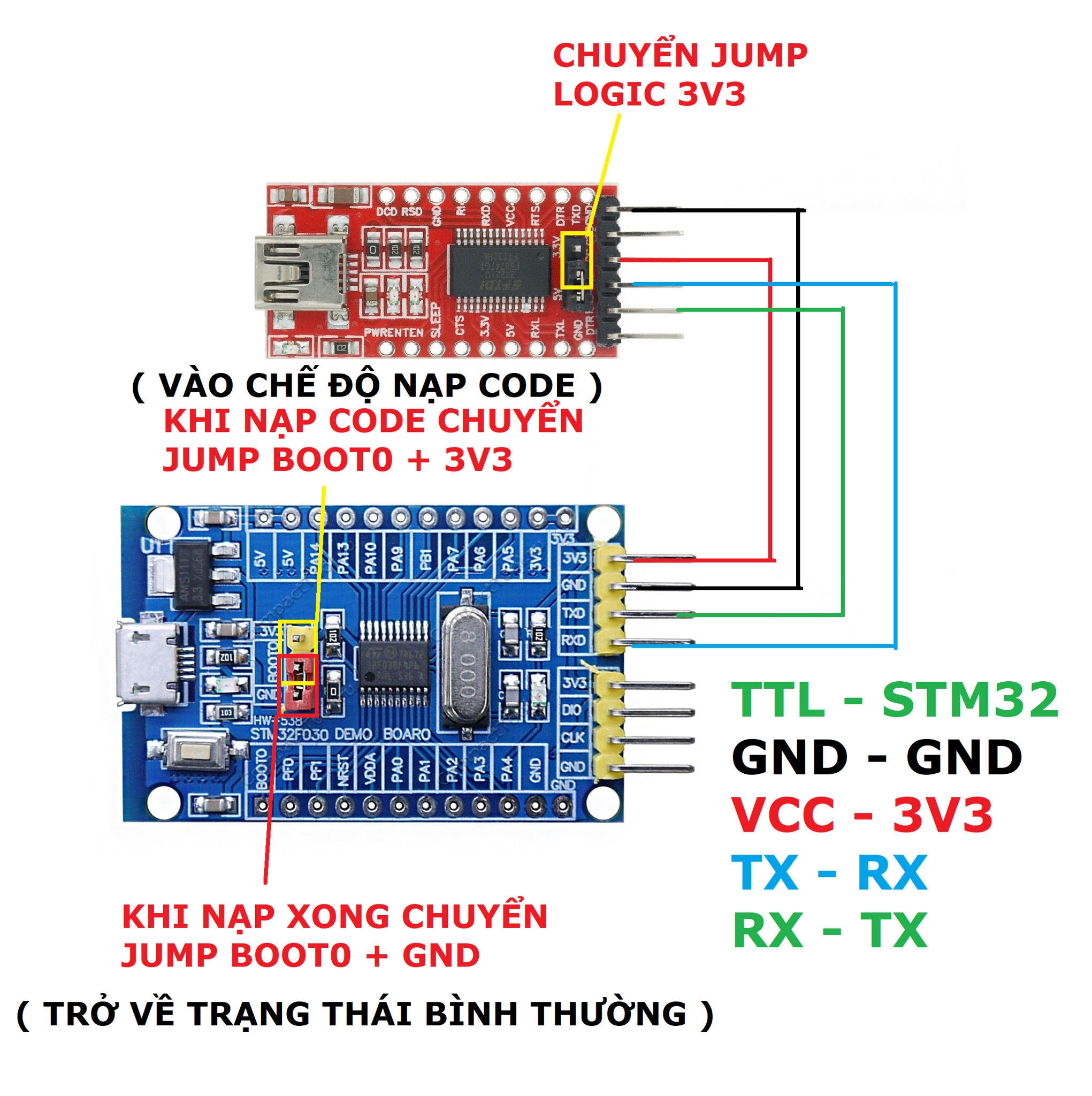 CÁCH NẠP CODE CHO STM32F030F4P6 BẰNG USB TTL