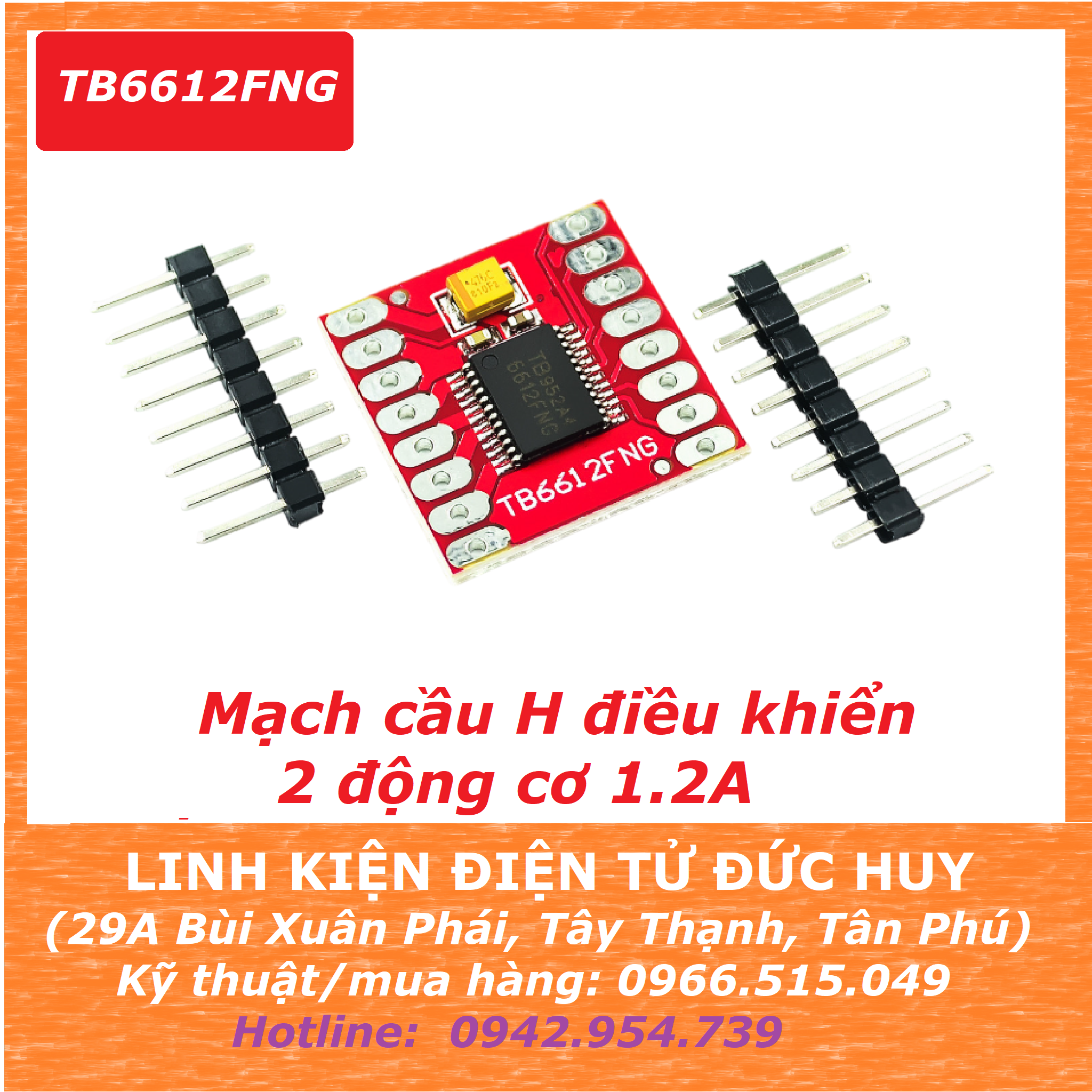 TB6612FNG là một module với giao tiếp điều khiển rất dễ dàng và giá rẻ, nhỏ gọn để điều khiển động cơ. Có khả năng điều khiển hai động cơ ở mức dòng điện không đổi lên đến 1,2A. Bên trong IC, bạn sẽ tìm thấy hai cầu H với đầy đủ các chức năng điều khiển động cơ quay thuận, nghịch, dừng phanh.