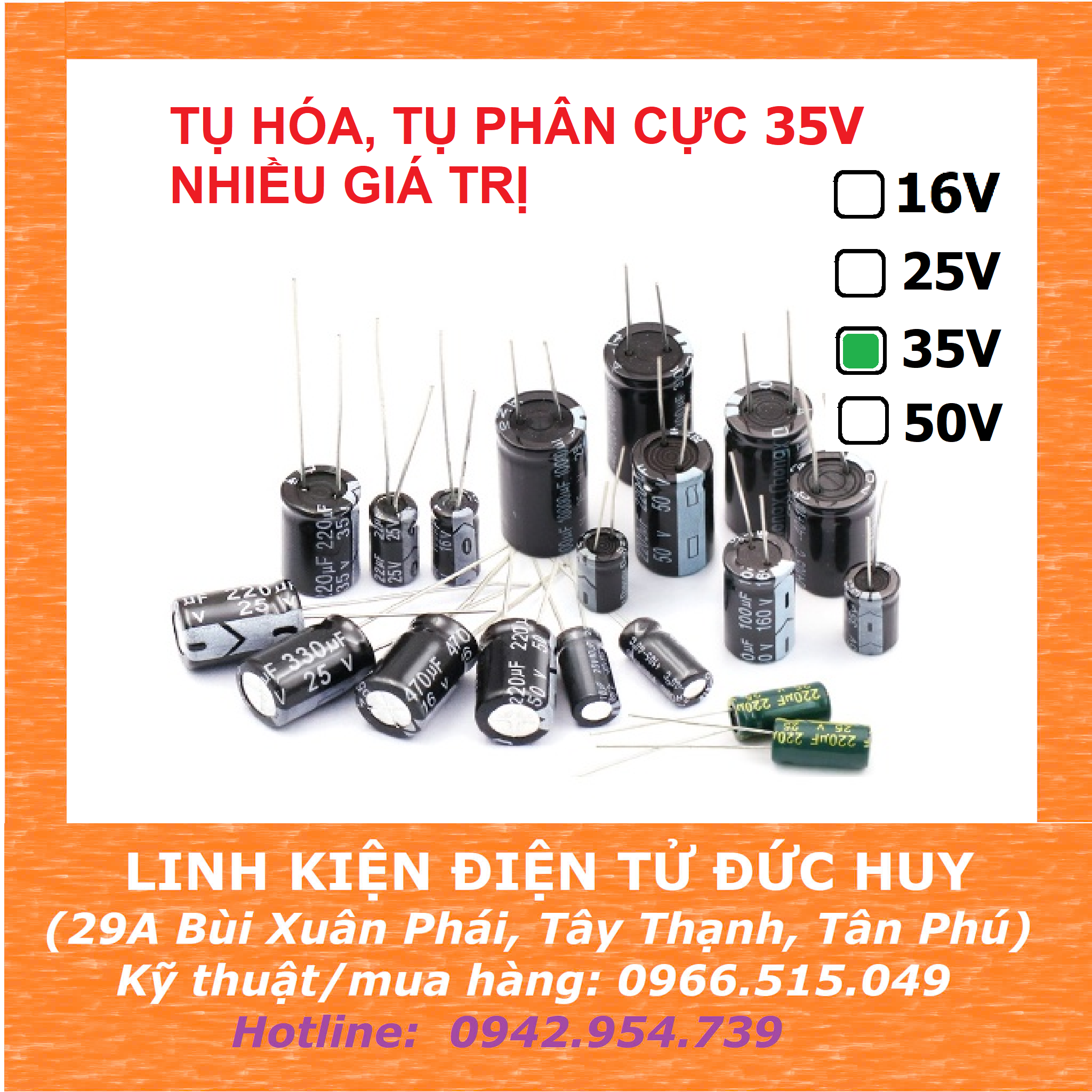 TỤ HÓA, TỤ PHÂN CỰC 35V NHIỀU GIÁ TRỊ