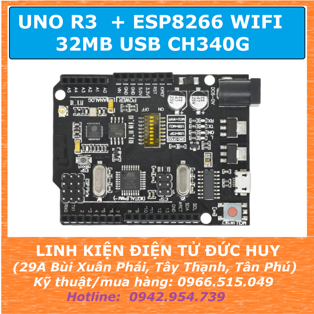 + Mang đầy đủ các tính năng như 1 module UNO R3, nhưng được tích hợp thêm chip Wifi ESP8266. Giúp cho các dự án IoT, nhà thông minh... được linh hoạt, thẩm mỹ nhưng vẫn mang đầy đủ các tính năng cần thiết.