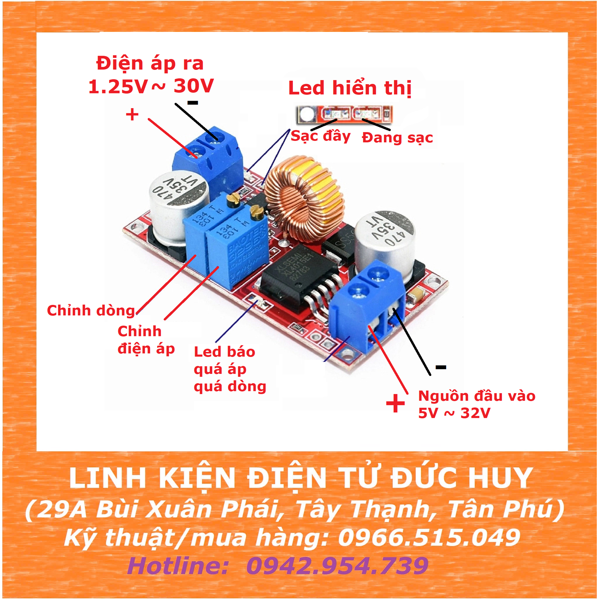 - Điện áp đầu ra: 1.25V - 30V